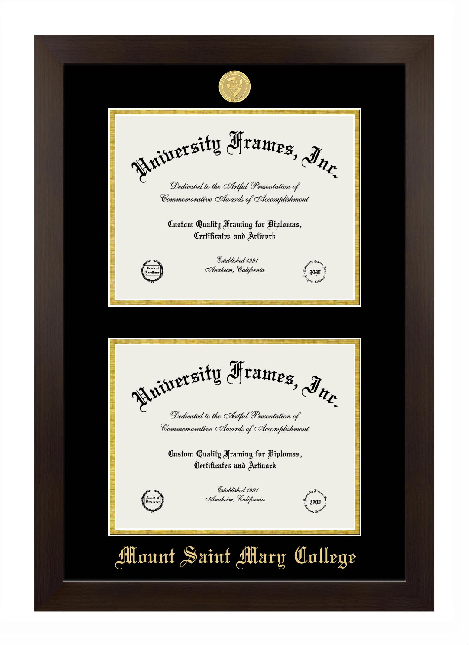 Hey there, Mount Saint Mary College (New York) grads. Congratulations on your accomplishment! Earning a degree is an achievement to be cherished forever. At University Frames, we create professional diploma frames for Mount Saint Mary College (New York) grads and alumni, offering them an elegant and impressive way to treasure their hard-earned diploma for a lifetime. Each of our degree frames is handcrafted in the US and custom-sized to fit the official Mount Saint Mary College (New York) diplomas. Customize your graduation frame using our easy and intuitive online design tool.