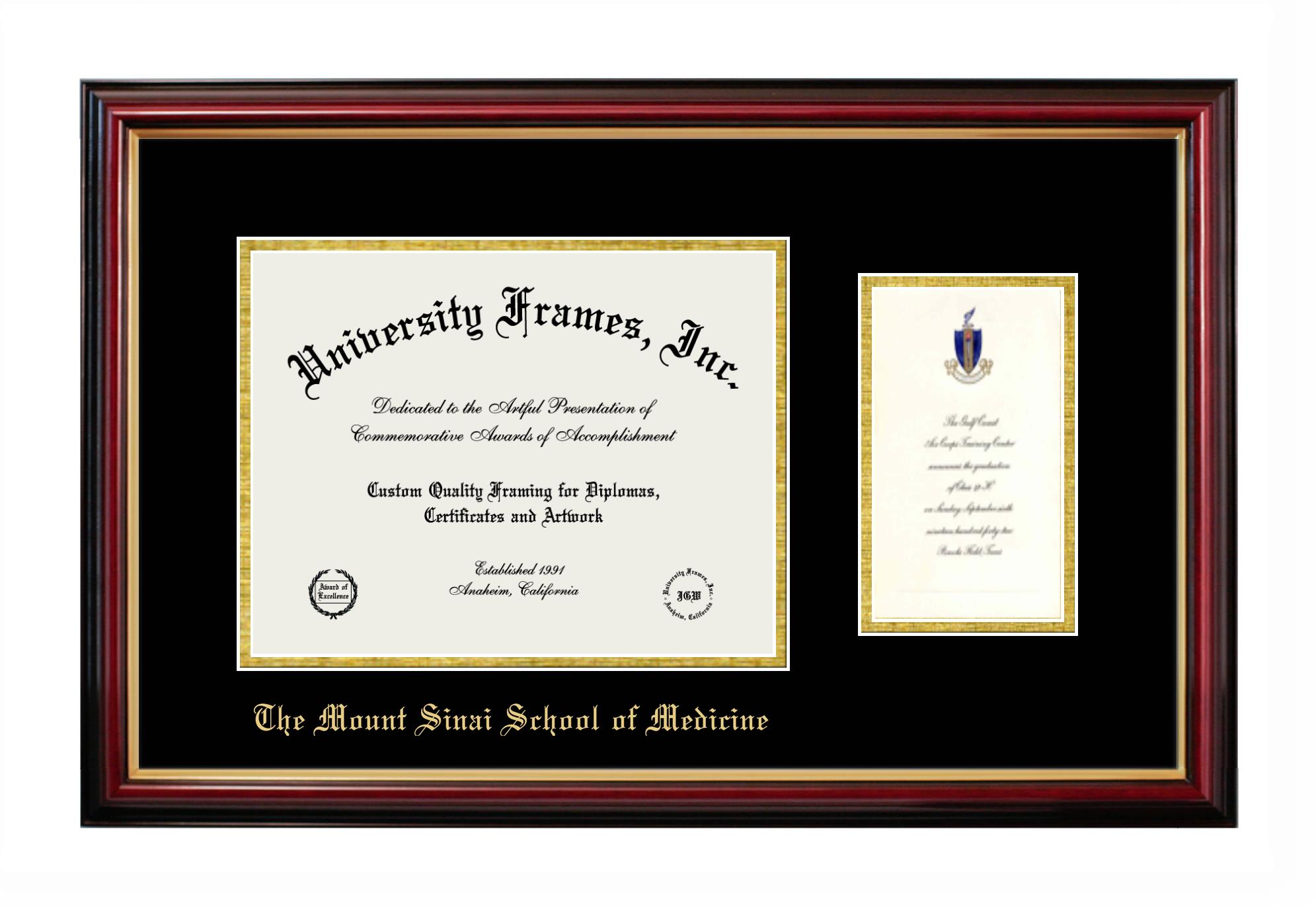 Hey there, Mount Sinai School of Medicine grads. Congratulations on your accomplishment! Earning a degree is an achievement to be cherished forever. At University Frames, we create professional diploma frames for Mount Sinai School of Medicine grads and alumni, offering them an elegant and impressive way to treasure their hard-earned diploma for a lifetime. Each of our degree frames is handcrafted in the US and custom-sized to fit the official Mount Sinai School of Medicine diplomas. Customize your graduation frame using our easy and intuitive online design tool.