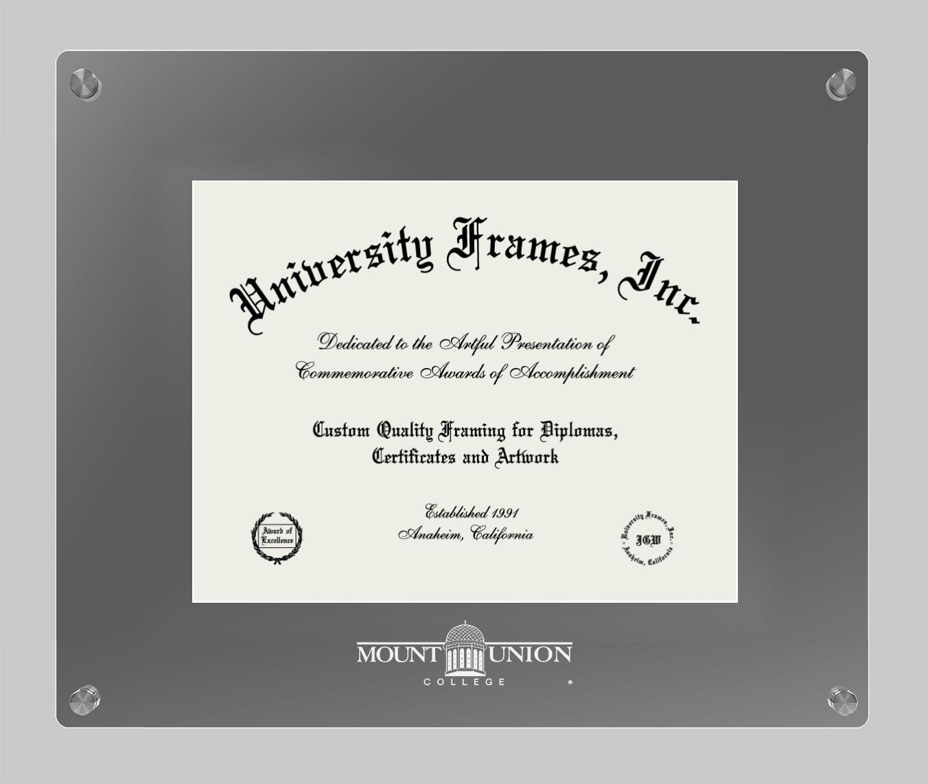 Hey there, Mount Union College grads. Congratulations on your accomplishment! Earning a degree is an achievement to be cherished forever. At University Frames, we create professional diploma frames for Mount Union College grads and alumni, offering them an elegant and impressive way to treasure their hard-earned diploma for a lifetime. Each of our degree frames is handcrafted in the US and custom-sized to fit the official Mount Union College diplomas. Customize your graduation frame using our easy and intuitive online design tool.