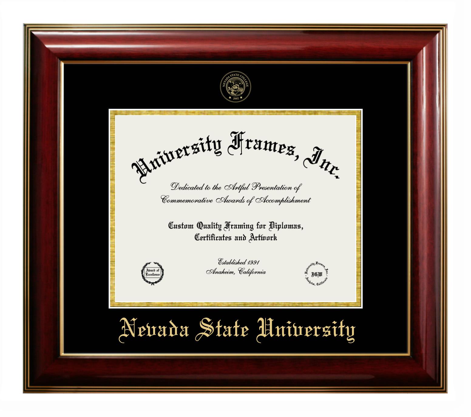 Hey there, Nevada State University grads. Congratulations on your accomplishment! Earning a degree is an achievement to be cherished forever. At University Frames, we create professional diploma frames for Nevada State University grads and alumni, offering them an elegant and impressive way to treasure their hard-earned diploma for a lifetime. Each of our degree frames is handcrafted in the US and custom-sized to fit the official Nevada State University diplomas. Customize your graduation frame using our easy and intuitive online design tool.