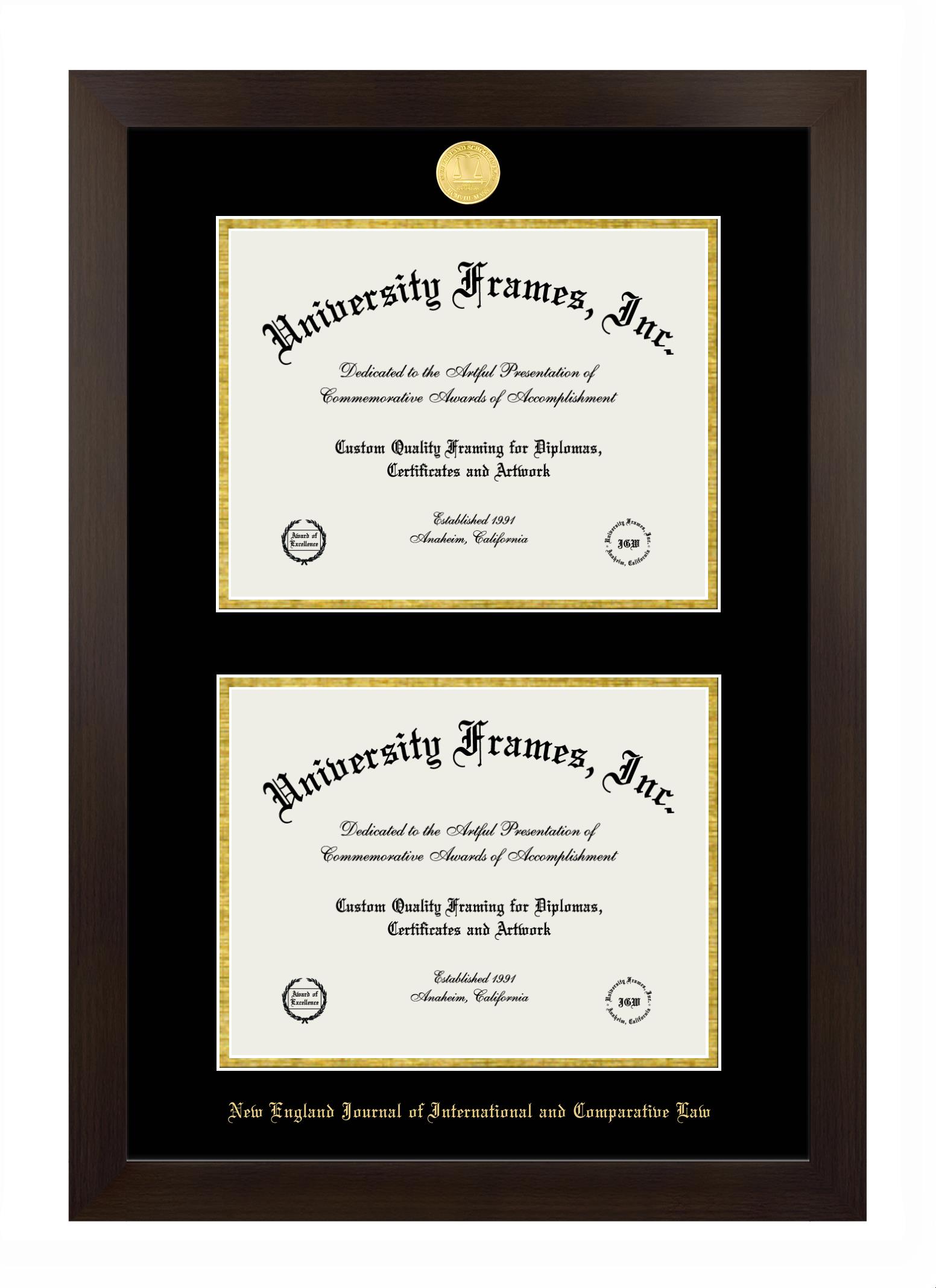 Hey there, New England Journal of International and Comparative Law grads. Congratulations on your accomplishment! Earning a degree is an achievement to be cherished forever. At University Frames, we create professional diploma frames for New England Journal of International and Comparative Law grads and alumni, offering them an elegant and impressive way to treasure their hard-earned diploma for a lifetime. Each of our degree frames is handcrafted in the US and custom-sized to fit the official New England Journal of International and Comparative Law diplomas. Customize your graduation frame using our easy and intuitive online design tool.