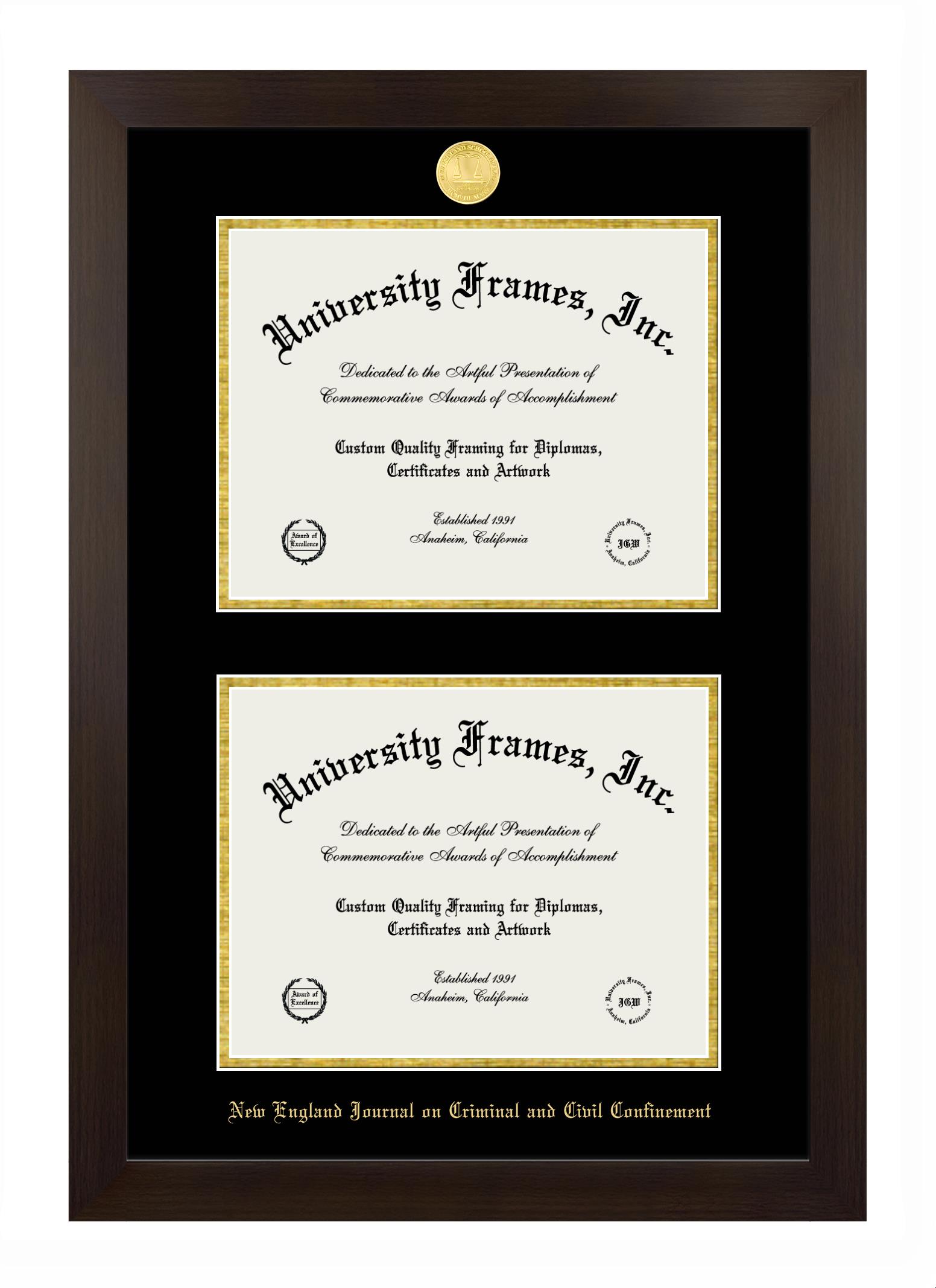Hey there, New England Journal on Criminal and Civil Confinement grads. Congratulations on your accomplishment! Earning a degree is an achievement to be cherished forever. At University Frames, we create professional diploma frames for New England Journal on Criminal and Civil Confinement grads and alumni, offering them an elegant and impressive way to treasure their hard-earned diploma for a lifetime. Each of our degree frames is handcrafted in the US and custom-sized to fit the official New England Journal on Criminal and Civil Confinement diplomas. Customize your graduation frame using our easy and intuitive online design tool.