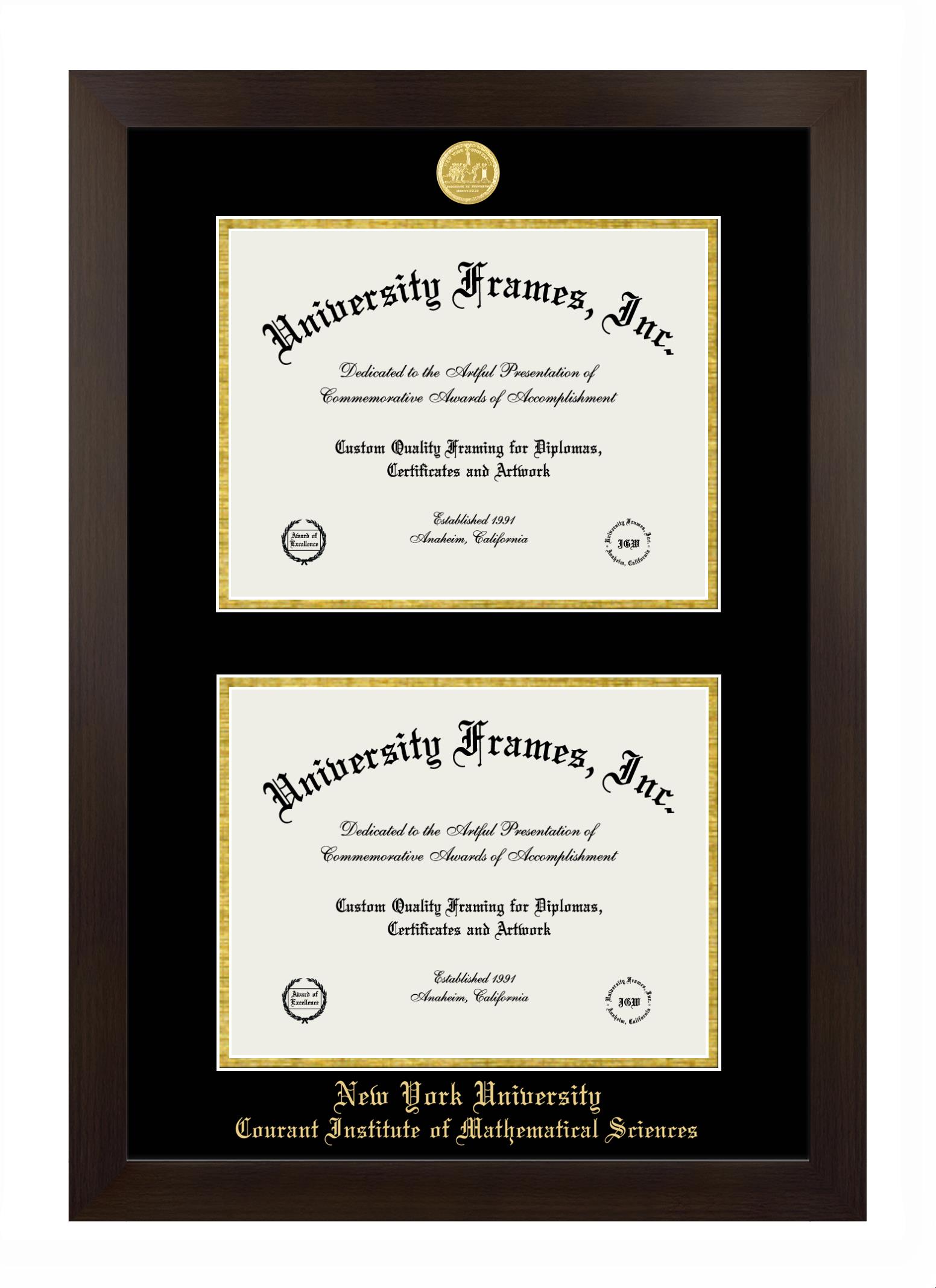 Hey there, New York University Courant Institute of Mathematical Sciences grads. Congratulations on your accomplishment! Earning a degree is an achievement to be cherished forever. At University Frames, we create professional diploma frames for New York University Courant Institute of Mathematical Sciences grads and alumni, offering them an elegant and impressive way to treasure their hard-earned diploma for a lifetime. Each of our degree frames is handcrafted in the US and custom-sized to fit the official New York University Courant Institute of Mathematical Sciences diplomas. Customize your graduation frame using our easy and intuitive online design tool.