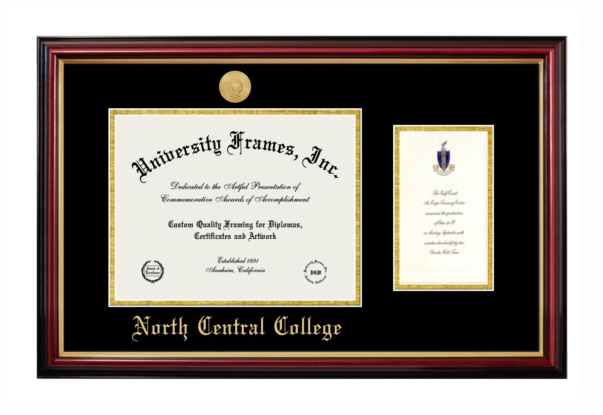 Hey there, North Central College grads. Congratulations on your accomplishment! Earning a degree is an achievement to be cherished forever. At University Frames, we create professional diploma frames for North Central College grads and alumni, offering them an elegant and impressive way to treasure their hard-earned diploma for a lifetime. Each of our degree frames is handcrafted in the US and custom-sized to fit the official North Central College diplomas. Customize your graduation frame using our easy and intuitive online design tool.