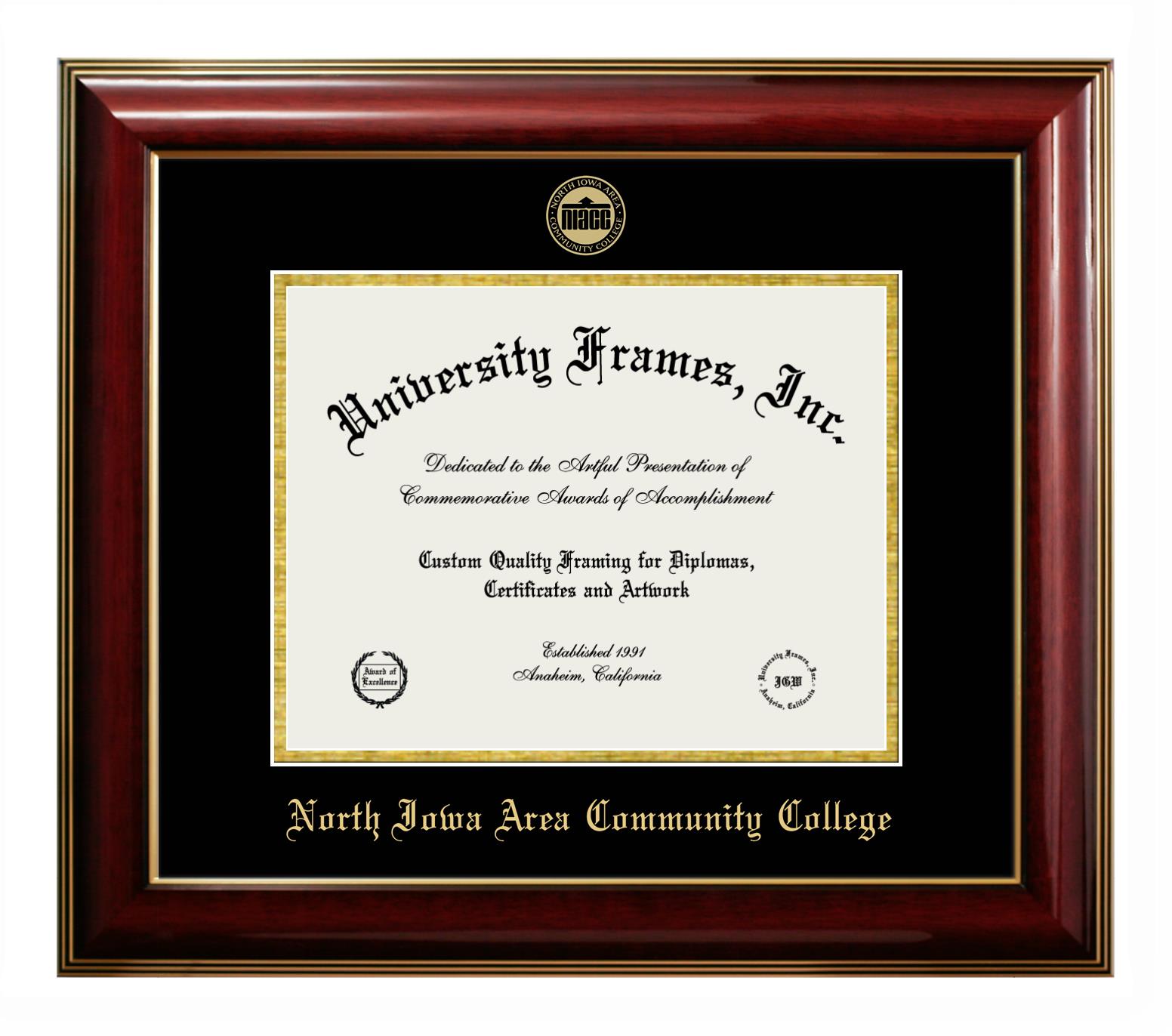 Hey there, North Iowa Area Community College grads. Congratulations on your accomplishment! Earning a degree is an achievement to be cherished forever. At University Frames, we create professional diploma frames for North Iowa Area Community College grads and alumni, offering them an elegant and impressive way to treasure their hard-earned diploma for a lifetime. Each of our degree frames is handcrafted in the US and custom-sized to fit the official North Iowa Area Community College diplomas. Customize your graduation frame using our easy and intuitive online design tool.