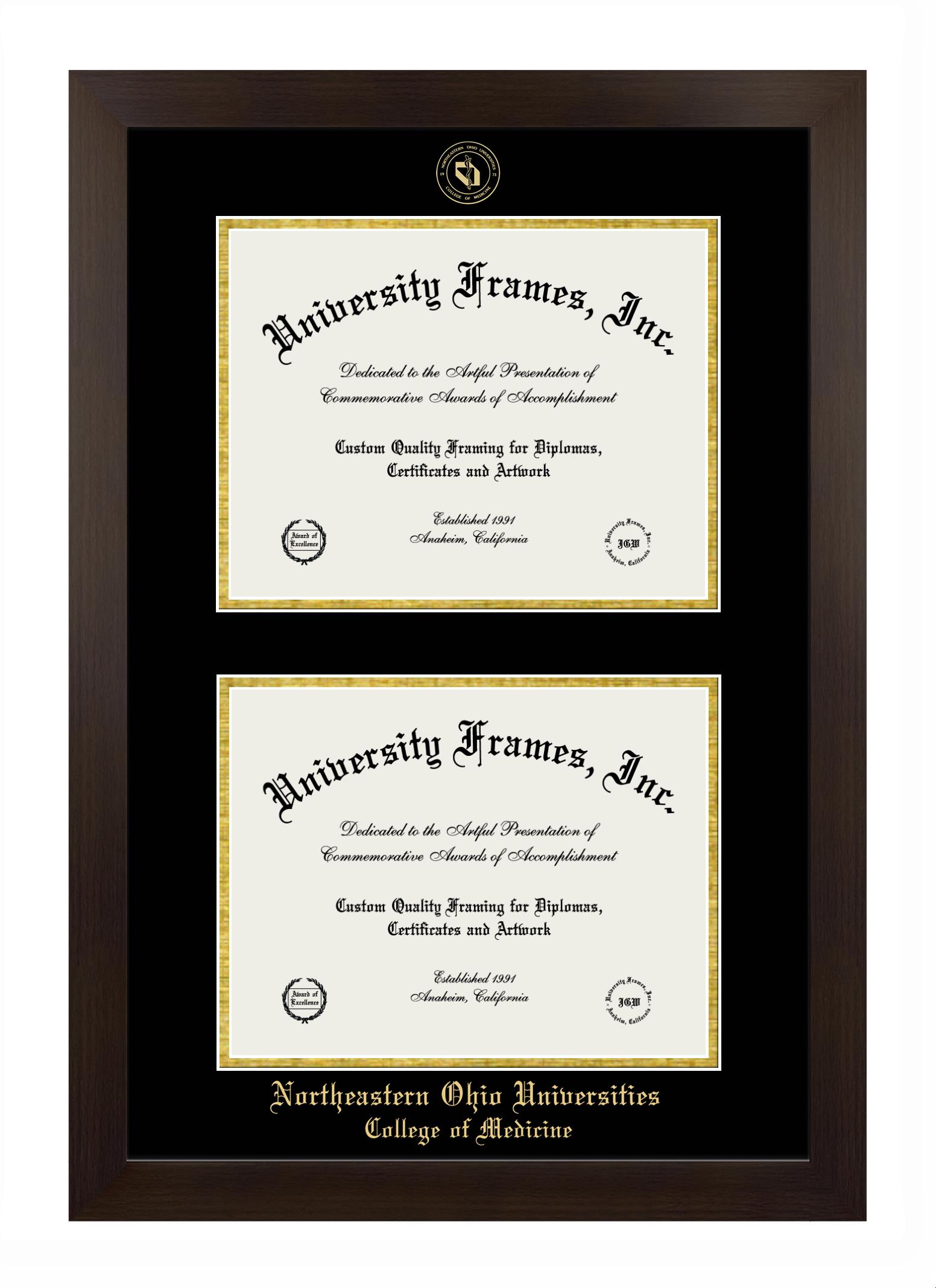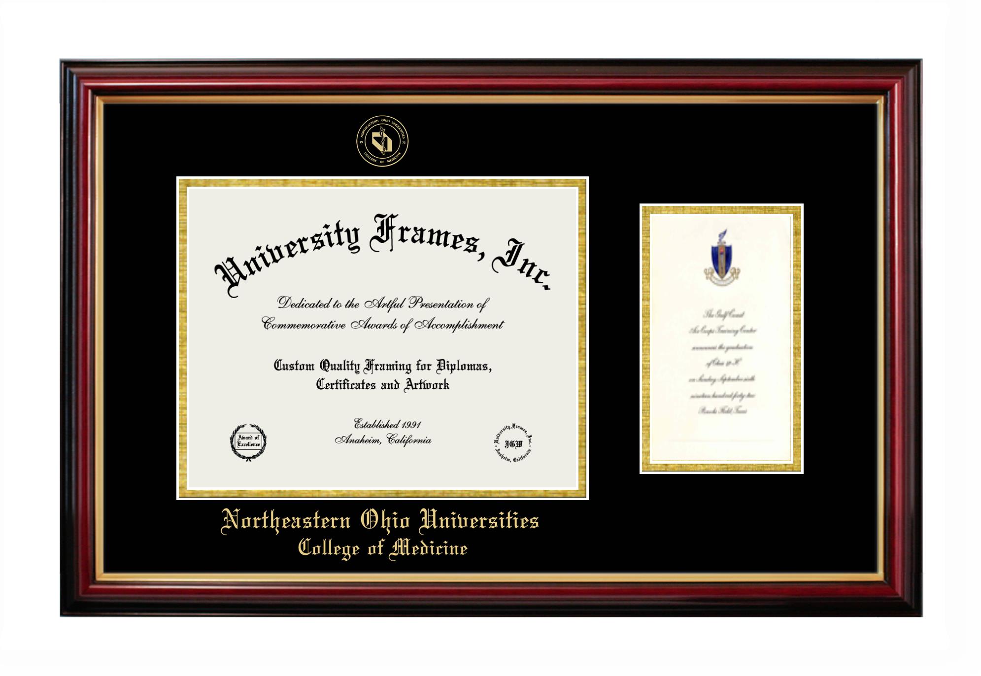 Hey there, Northeastern Ohio Universities College of Medicine grads. Congratulations on your accomplishment! Earning a degree is an achievement to be cherished forever. At University Frames, we create professional diploma frames for Northeastern Ohio Universities College of Medicine grads and alumni, offering them an elegant and impressive way to treasure their hard-earned diploma for a lifetime. Each of our degree frames is handcrafted in the US and custom-sized to fit the official Northeastern Ohio Universities College of Medicine diplomas. Customize your graduation frame using our easy and intuitive online design tool.