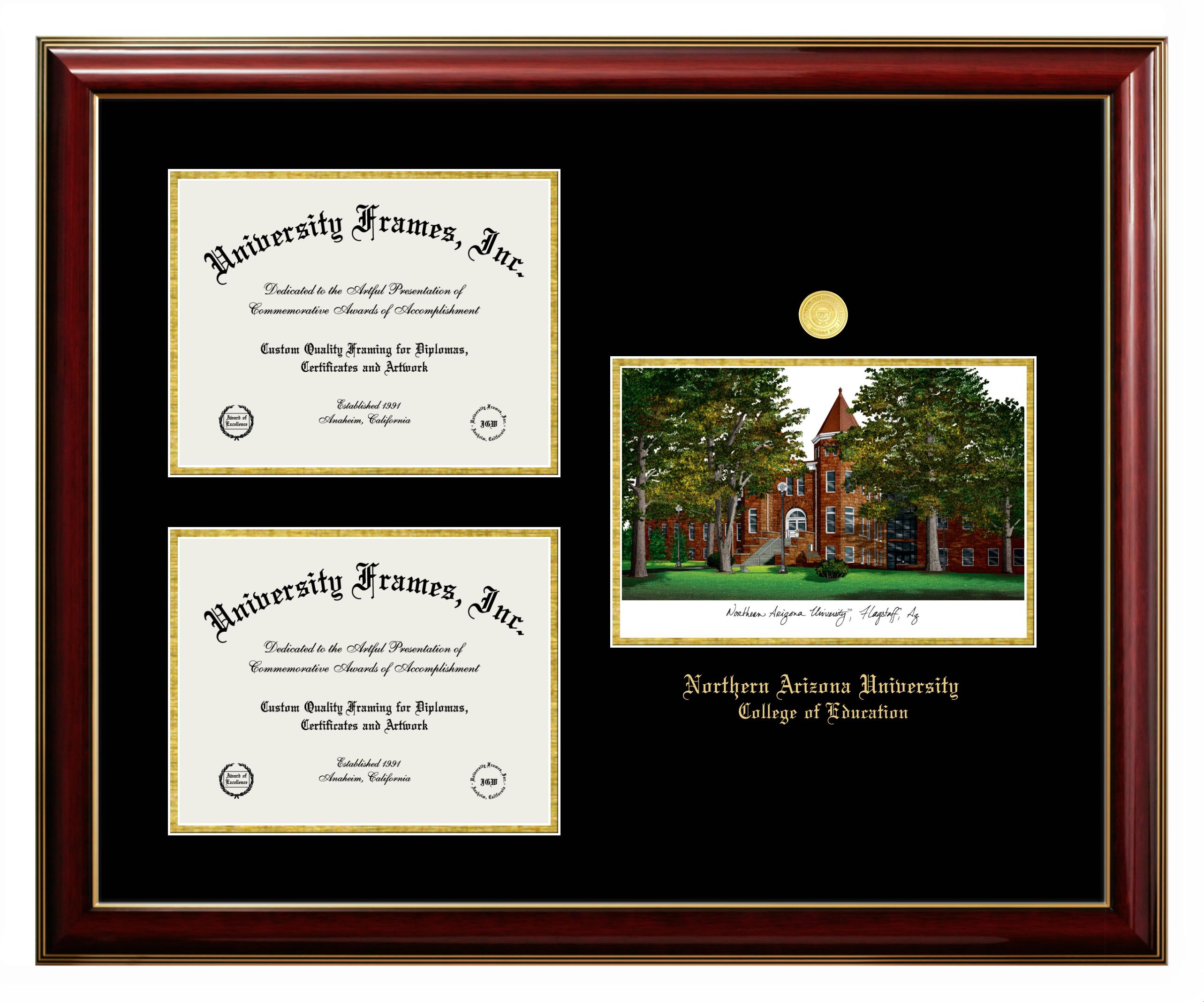 Hey there, Northern Arizona University College of Education grads. Congratulations on your accomplishment! Earning a degree is an achievement to be cherished forever. At University Frames, we create professional diploma frames for Northern Arizona University College of Education grads and alumni, offering them an elegant and impressive way to treasure their hard-earned diploma for a lifetime. Each of our degree frames is handcrafted in the US and custom-sized to fit the official Northern Arizona University College of Education diplomas. Customize your graduation frame using our easy and intuitive online design tool.