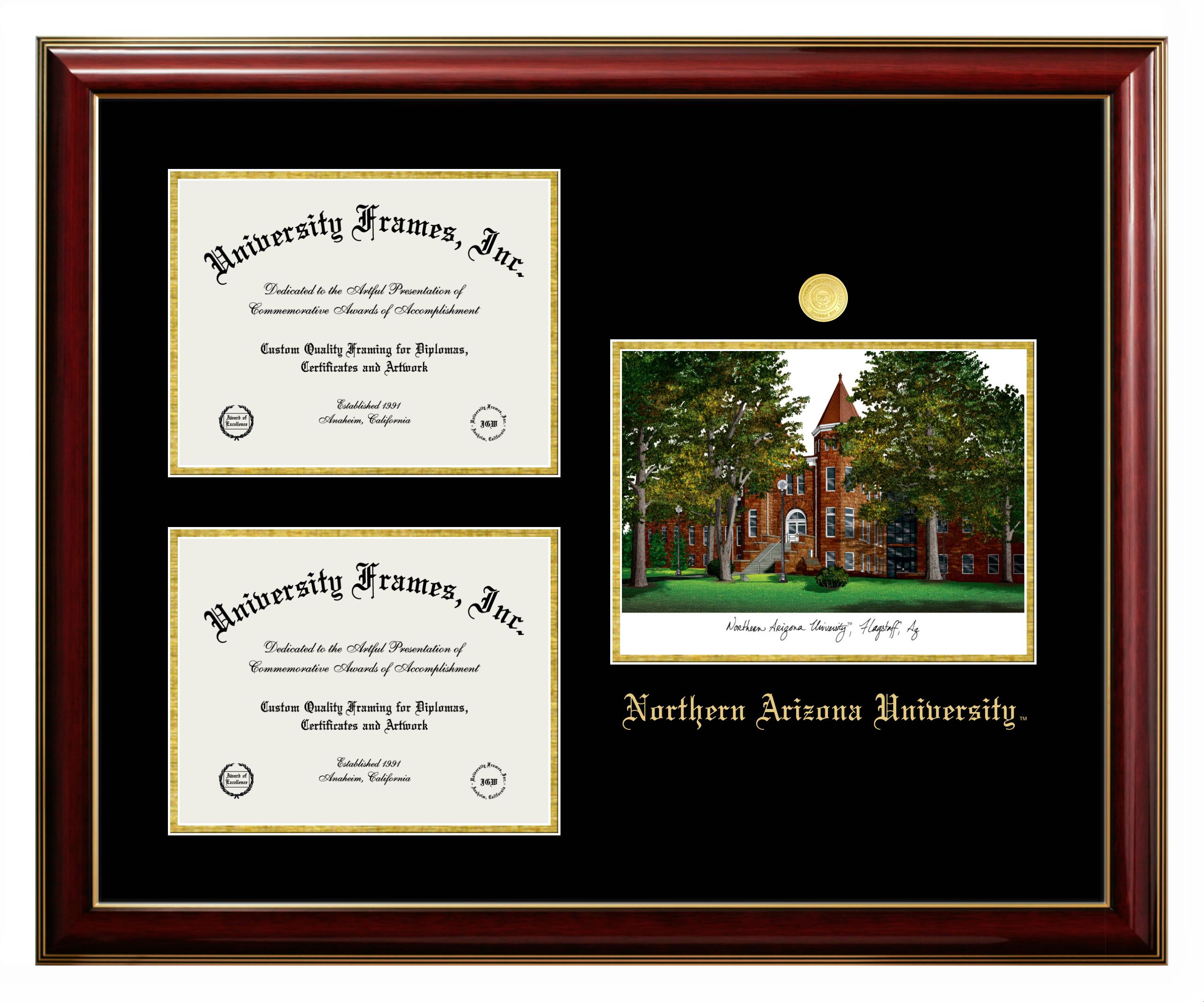 Hey there, Northern Arizona University grads. Congratulations on your accomplishment! Earning a degree is an achievement to be cherished forever. At University Frames, we create professional diploma frames for Northern Arizona University grads and alumni, offering them an elegant and impressive way to treasure their hard-earned diploma for a lifetime. Each of our degree frames is handcrafted in the US and custom-sized to fit the official Northern Arizona University diplomas. Customize your graduation frame using our easy and intuitive online design tool.