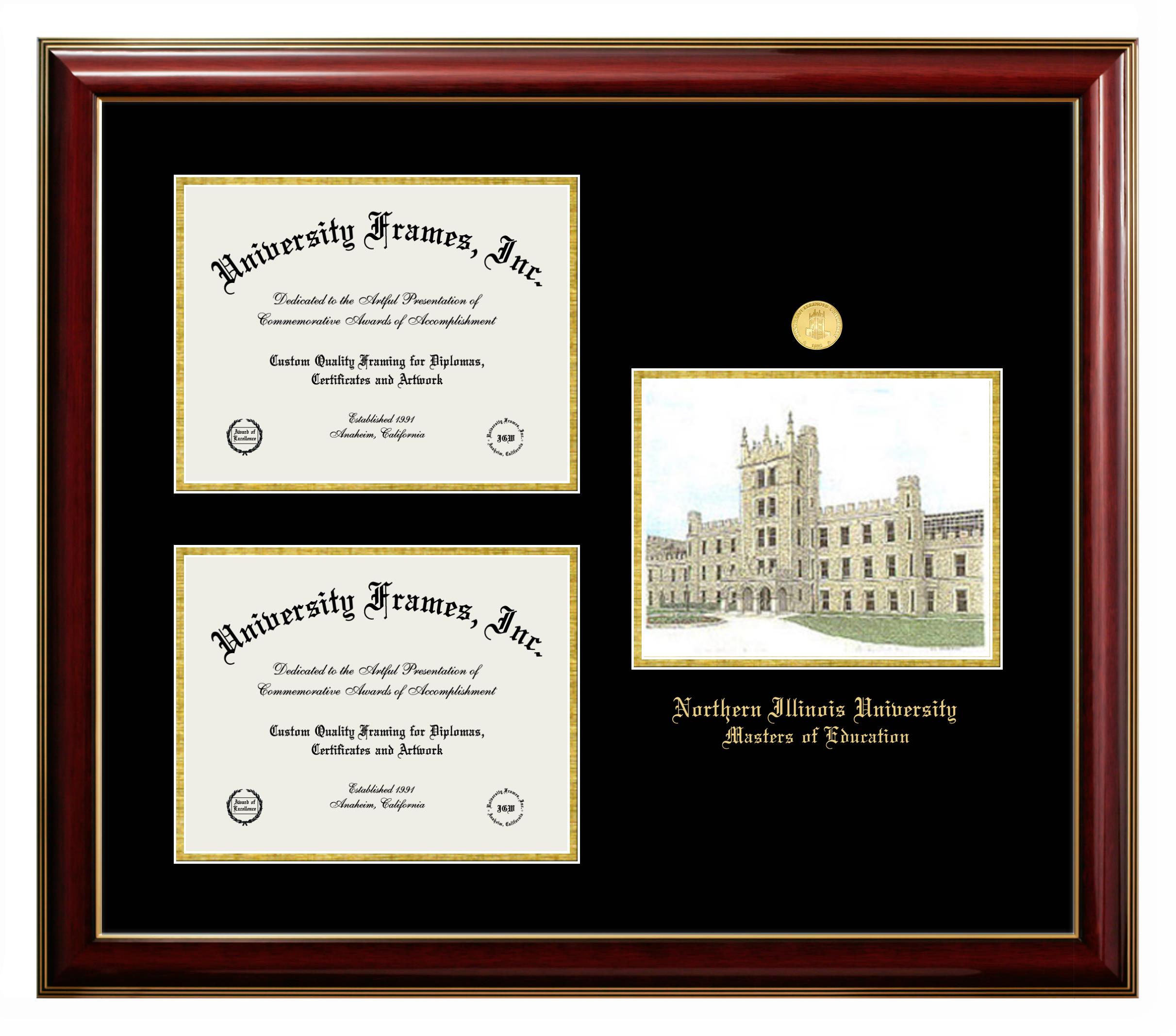 Hey there, Northern Illinois University Masters of Education grads. Congratulations on your accomplishment! Earning a degree is an achievement to be cherished forever. At University Frames, we create professional diploma frames for Northern Illinois University Masters of Education grads and alumni, offering them an elegant and impressive way to treasure their hard-earned diploma for a lifetime. Each of our degree frames is handcrafted in the US and custom-sized to fit the official Northern Illinois University Masters of Education diplomas. Customize your graduation frame using our easy and intuitive online design tool.