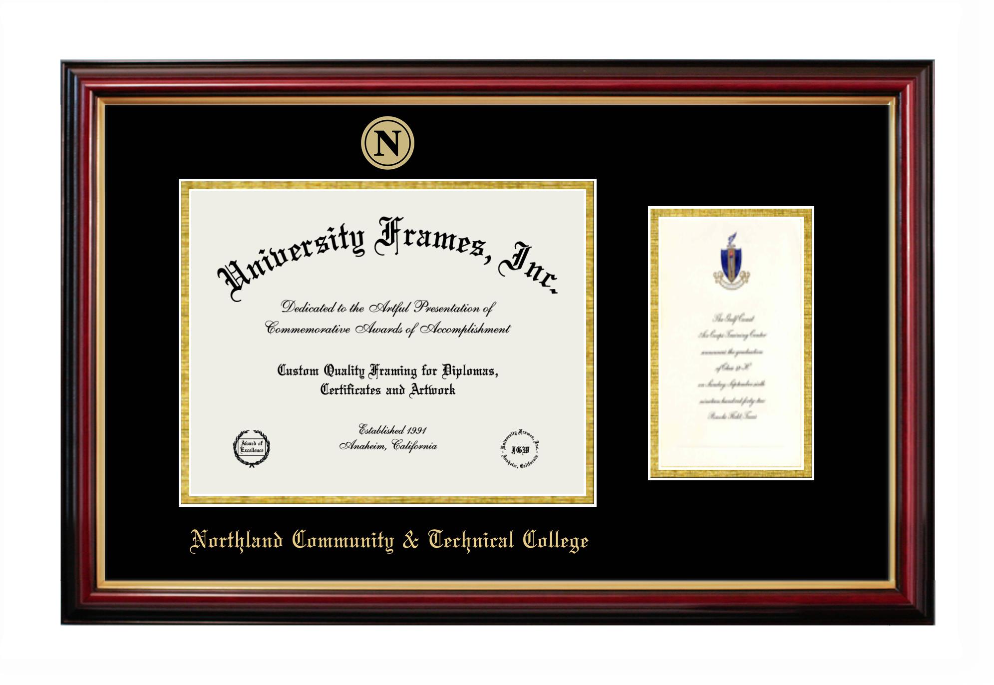 Hey there, Northland Community & Technical College grads. Congratulations on your accomplishment! Earning a degree is an achievement to be cherished forever. At University Frames, we create professional diploma frames for Northland Community & Technical College grads and alumni, offering them an elegant and impressive way to treasure their hard-earned diploma for a lifetime. Each of our degree frames is handcrafted in the US and custom-sized to fit the official Northland Community & Technical College diplomas. Customize your graduation frame using our easy and intuitive online design tool.