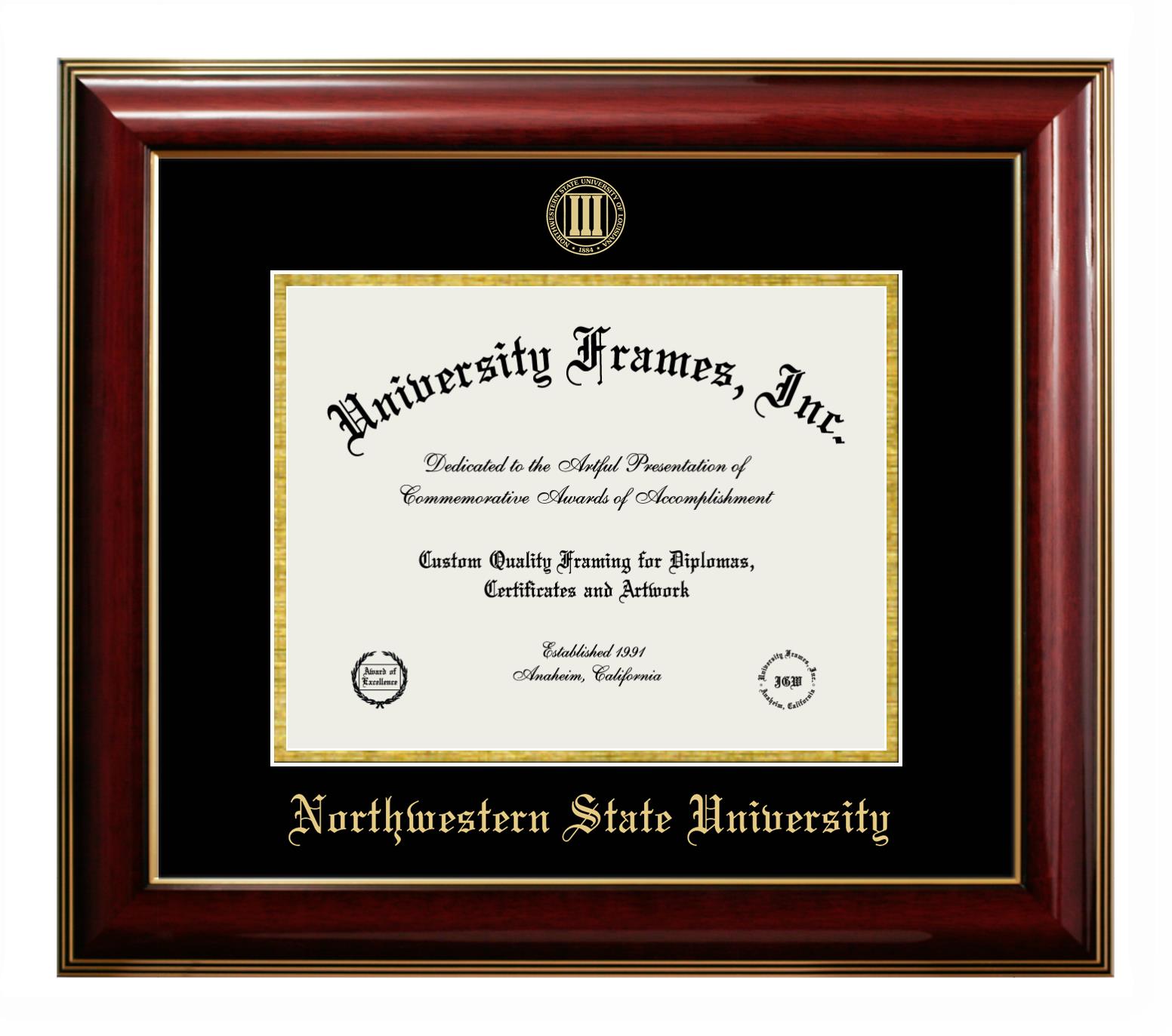 Hey there, Northwestern State University grads. Congratulations on your accomplishment! Earning a degree is an achievement to be cherished forever. At University Frames, we create professional diploma frames for Northwestern State University grads and alumni, offering them an elegant and impressive way to treasure their hard-earned diploma for a lifetime. Each of our degree frames is handcrafted in the US and custom-sized to fit the official Northwestern State University diplomas. Customize your graduation frame using our easy and intuitive online design tool.
