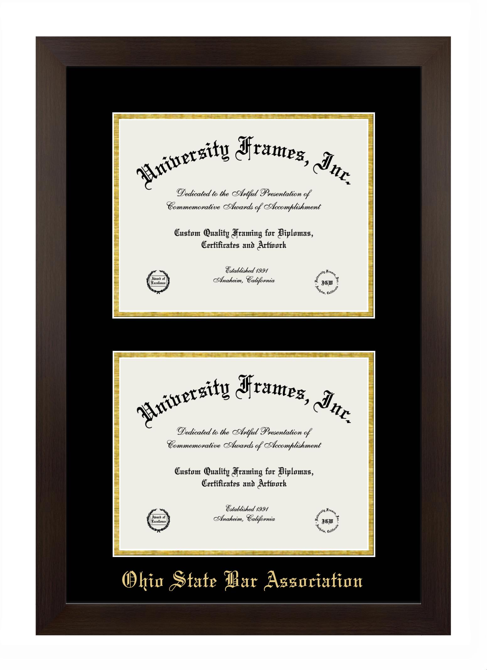 Hey there, Ohio State Bar Association grads. Congratulations on your accomplishment! Earning a degree is an achievement to be cherished forever. At University Frames, we create professional diploma frames for Ohio State Bar Association grads and alumni, offering them an elegant and impressive way to treasure their hard-earned diploma for a lifetime. Each of our degree frames is handcrafted in the US and custom-sized to fit the official Ohio State Bar Association diplomas. Customize your graduation frame using our easy and intuitive online design tool.