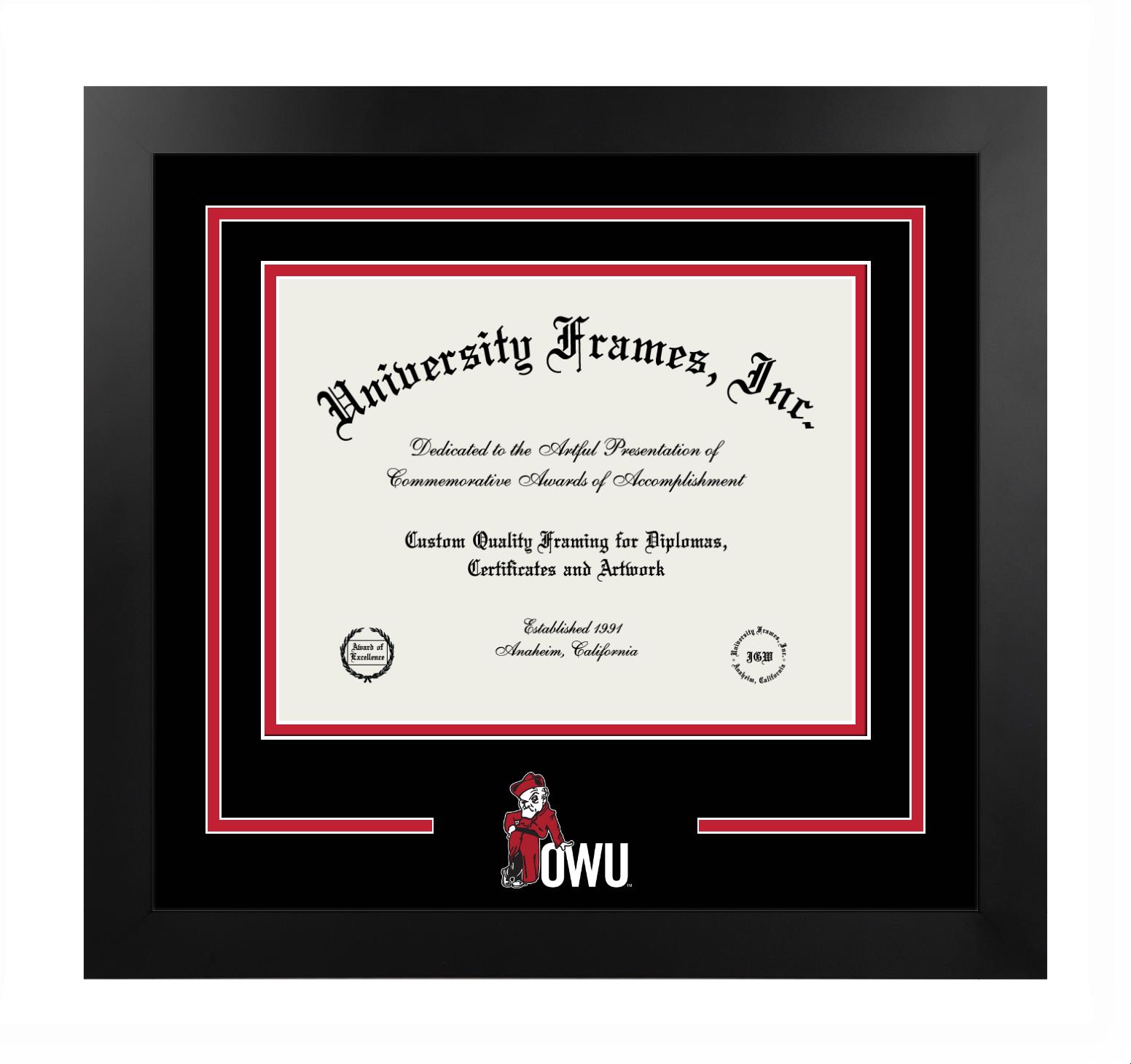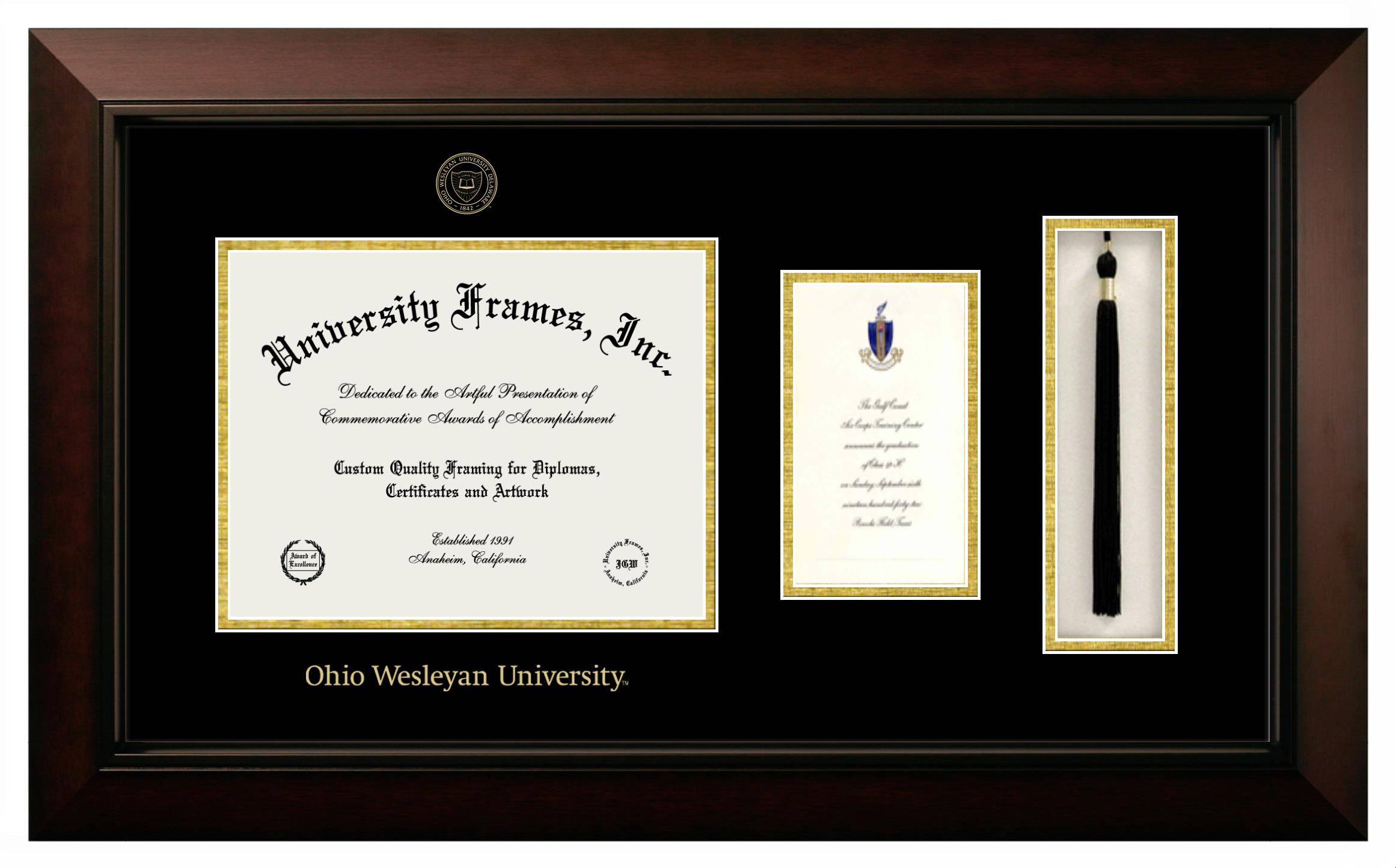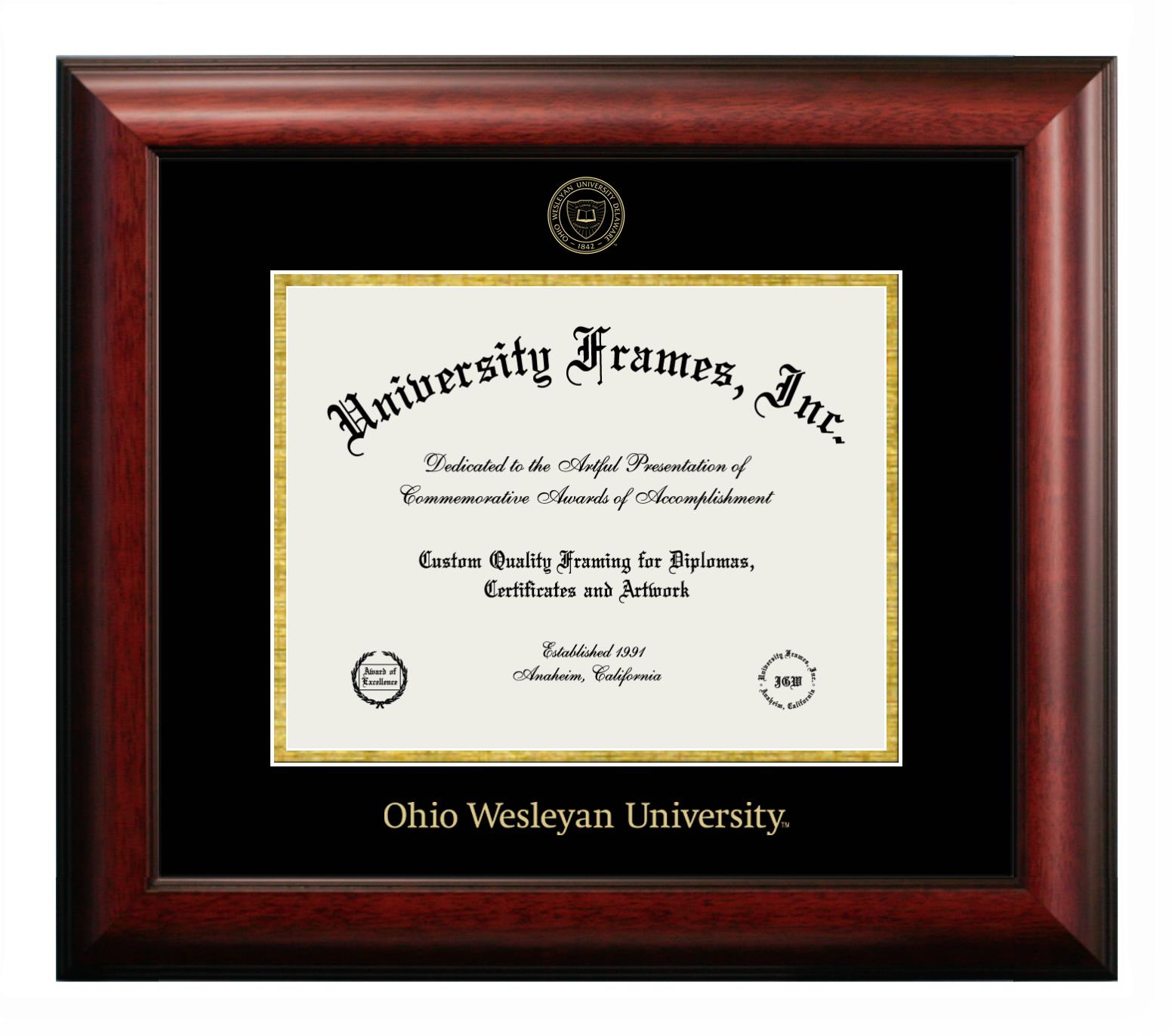 If you are looking for a professional diploma frame to showcase your achievement or are in search of a unique graduation gift for a recent grad or alum, you have come to the right place! We provide Ohio Wesleyan University diploma frames that are handcrafted in the USA and sized to fit the official Ohio Wesleyan University diploma. You can customize the graduation frames according to your taste with our online design tool. Go ahead and start customizing your diploma frame now!