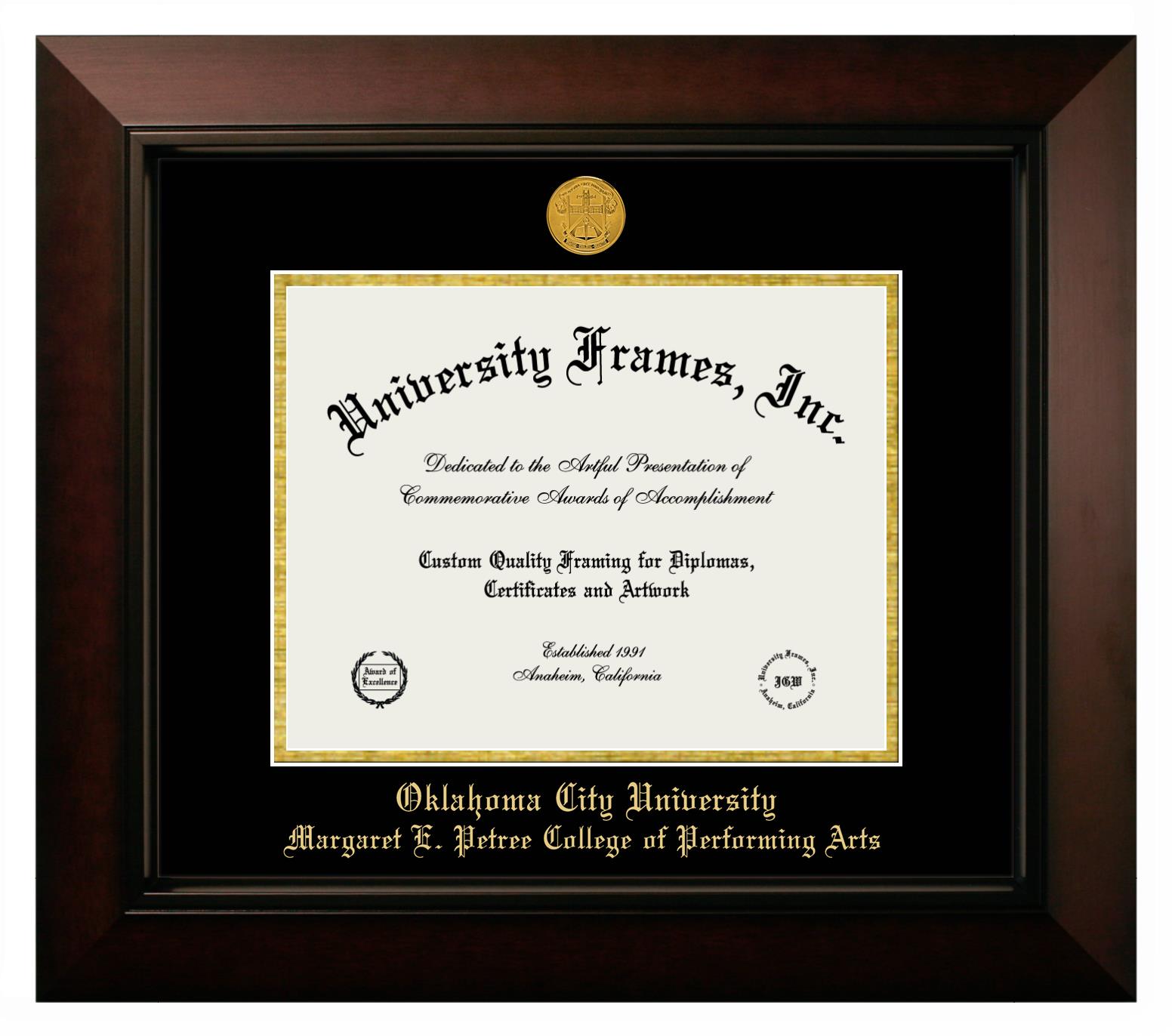 If you are looking for a professional diploma frame to showcase your achievement or are in search of a unique graduation gift for a recent grad or alum, you have come to the right place! We provide Oklahoma City University Margaret E. Petree College of Performing Arts diploma frames that are handcrafted in the USA and sized to fit the official Oklahoma City University Margaret E. Petree College of Performing Arts diploma. You can customize the graduation frames according to your taste with our online design tool. Go ahead and start customizing your diploma frame now!