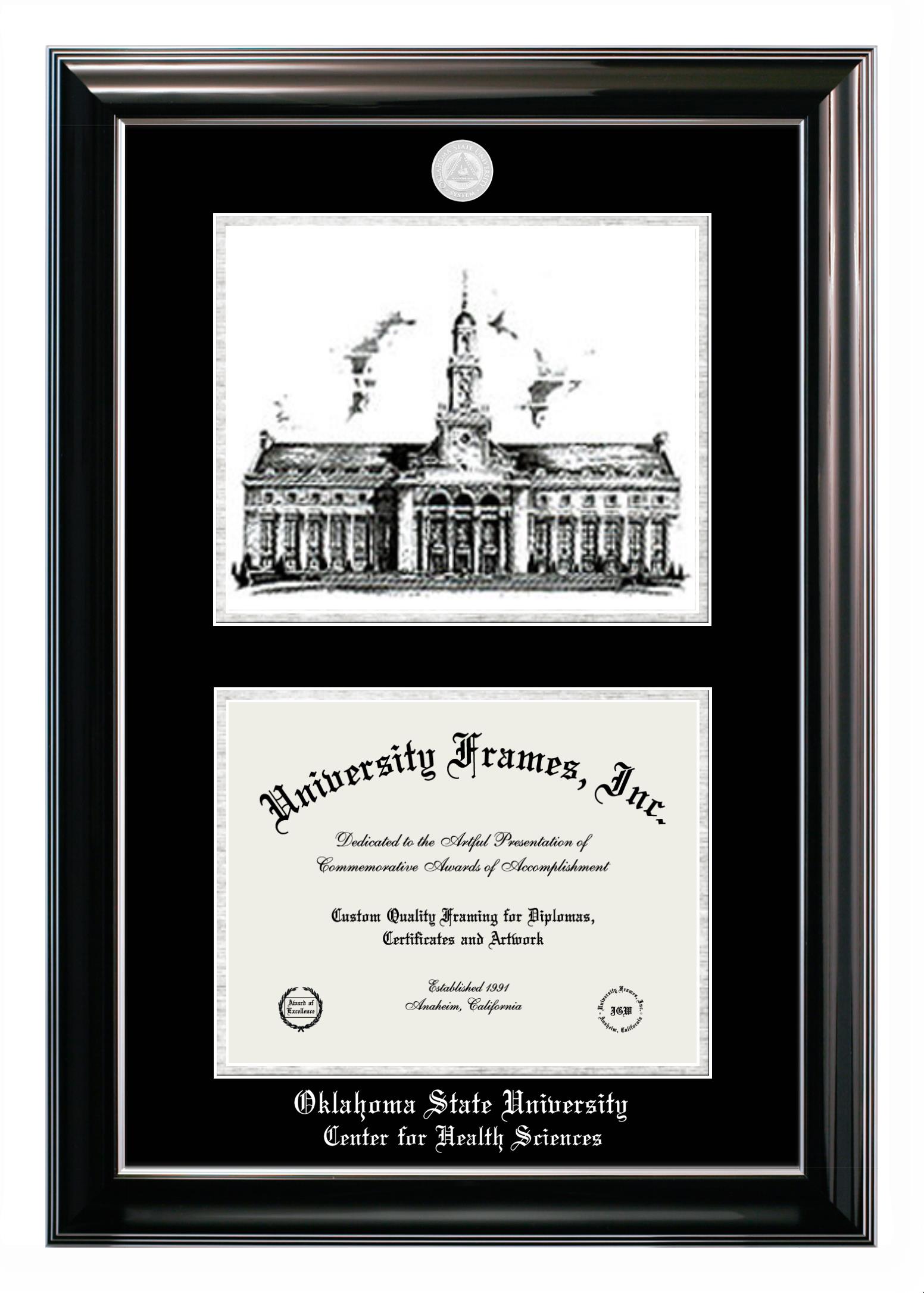If you are looking for a professional diploma frame to showcase your achievement or are in search of a unique graduation gift for a recent grad or alum, you have come to the right place! We provide Oklahoma State University Center for Health Sciences diploma frames that are handcrafted in the USA and sized to fit the official Oklahoma State University Center for Health Sciences diploma. You can customize the graduation frames according to your taste with our online design tool. Go ahead and start customizing your diploma frame now!