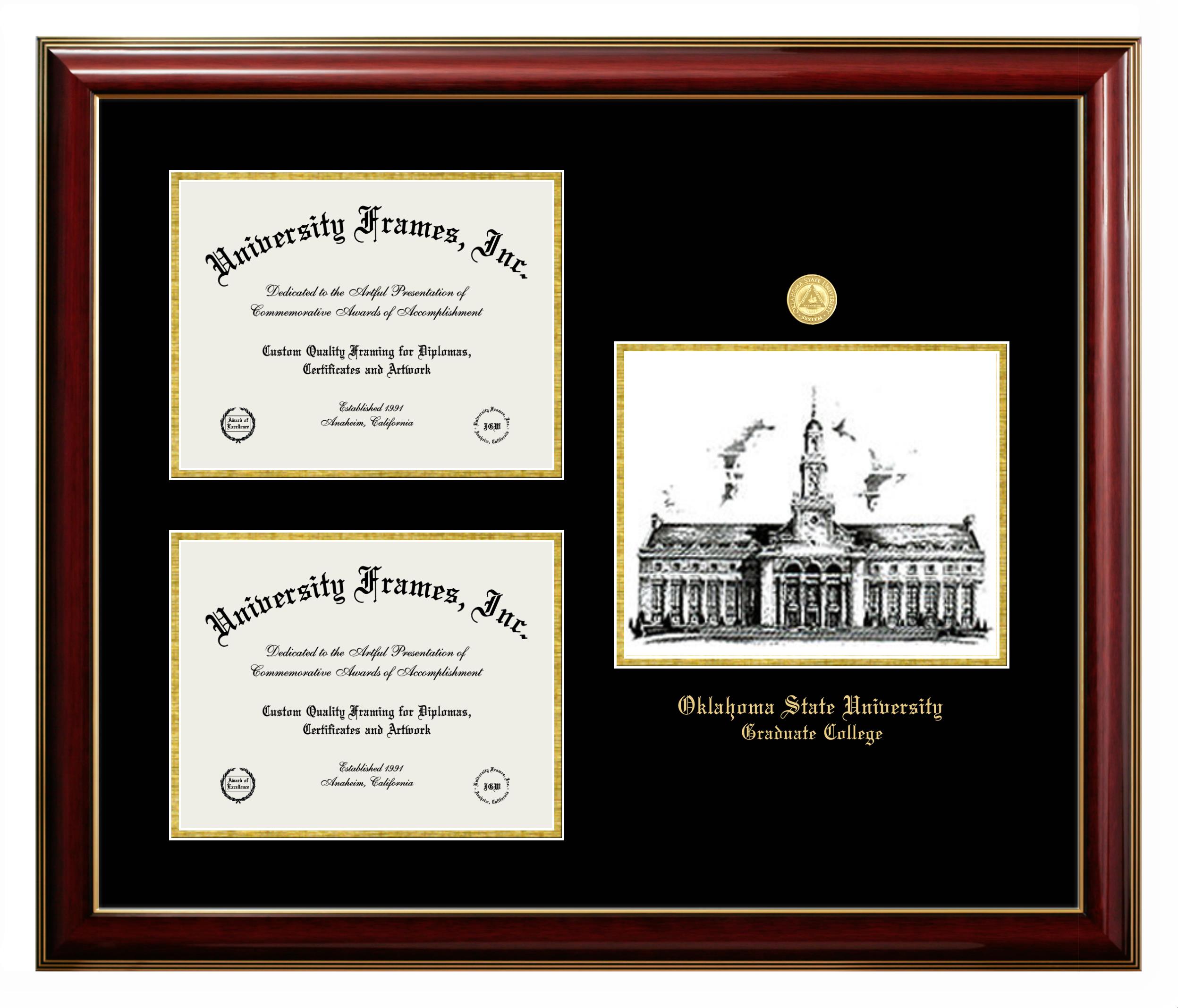If you are looking for a professional diploma frame to showcase your achievement or are in search of a unique graduation gift for a recent grad or alum, you have come to the right place! We provide Oklahoma State University Graduate College diploma frames that are handcrafted in the USA and sized to fit the official Oklahoma State University Graduate College diploma. You can customize the graduation frames according to your taste with our online design tool. Go ahead and start customizing your diploma frame now!