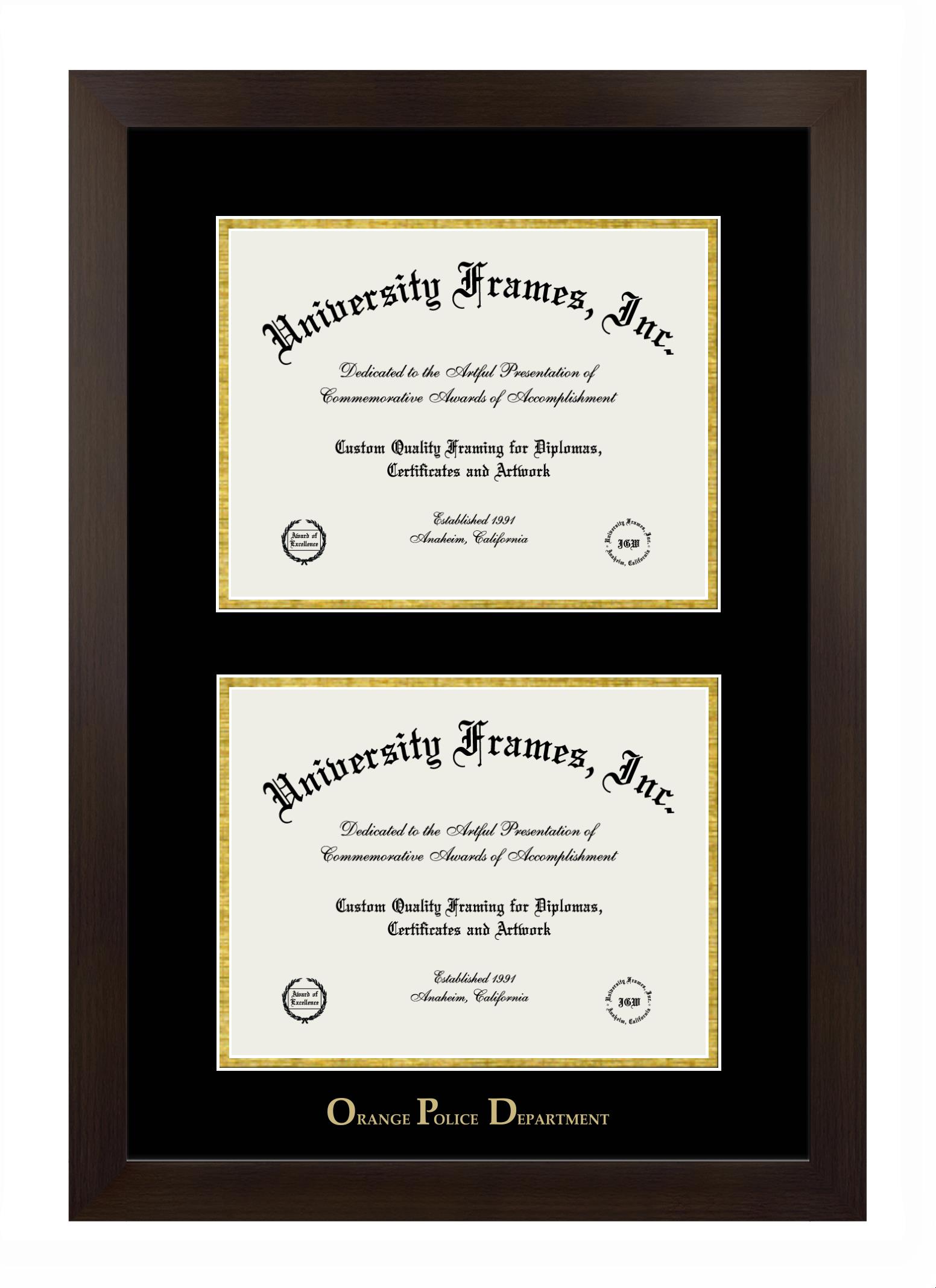 If you are looking for a professional diploma frame to showcase your achievement or are in search of a unique graduation gift for a recent grad or alum, you have come to the right place! We provide Orange Police Department diploma frames that are handcrafted in the USA and sized to fit the official Orange Police Department diploma. You can customize the graduation frames according to your taste with our online design tool. Go ahead and start customizing your diploma frame now!