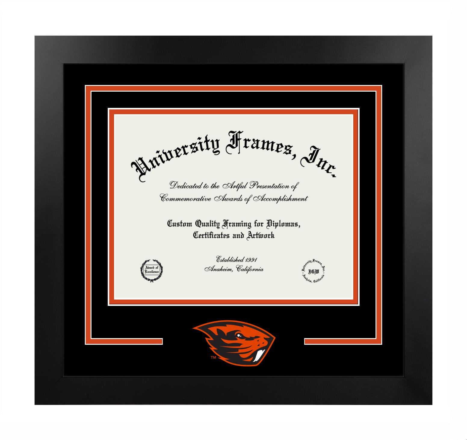 If you are looking for a professional diploma frame to showcase your achievement or are in search of a unique graduation gift for a recent grad or alum, you have come to the right place! We provide Oregon State University College of Pharmacy diploma frames that are handcrafted in the USA and sized to fit the official Oregon State University College of Pharmacy diploma. You can customize the graduation frames according to your taste with our online design tool. Go ahead and start customizing your diploma frame now!
