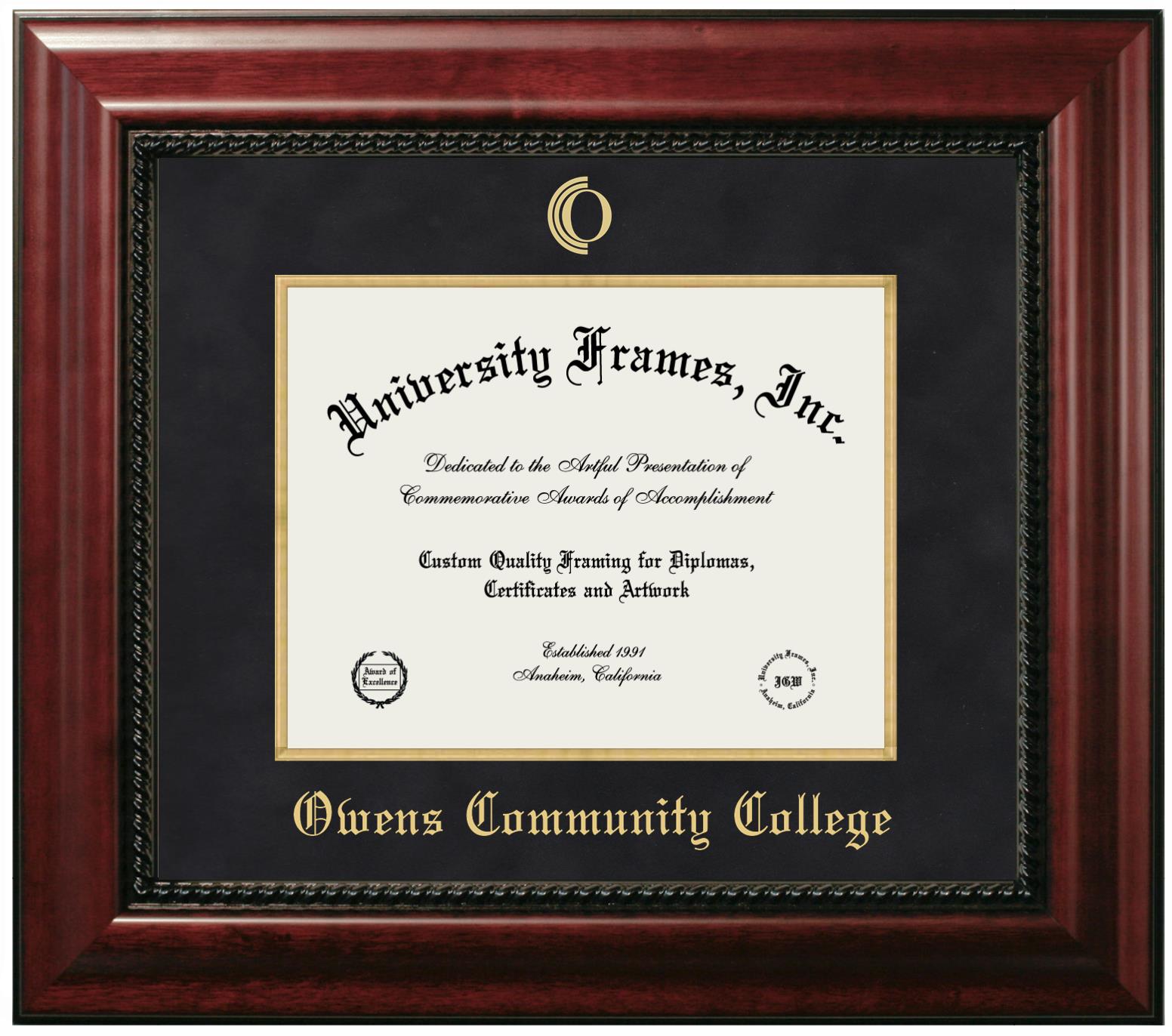 Are you a Owens Community College graduate looking for an officially licensed diploma frame to showcase your achievement? Or, are you looking for a unique graduation gift for a recent Owens Community College graduate or alum? You have come to the right place! Our officially licensed custom diploma frames have the original seal of Owens Community College. Each of our degree frames is handcrafted to offer the highest quality and precision. You can easily customize your graduation frames according to your style and preference. Start customizing your college diploma frame now!
