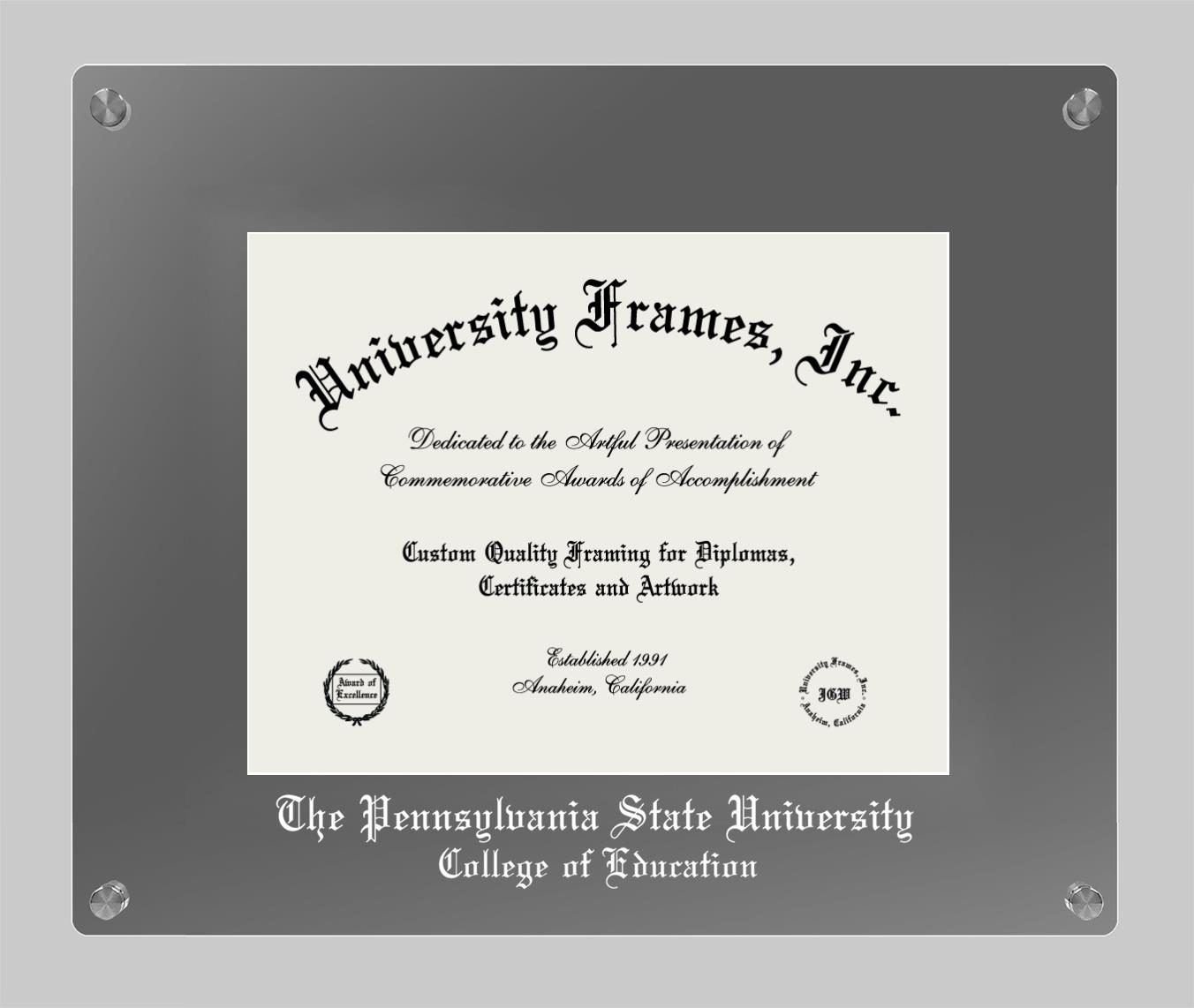 If you are looking for a professional diploma frame to showcase your achievement or are in search of a unique graduation gift for a recent grad or alum, you have come to the right place! We provide Pennsylvania State University College of Education diploma frames that are handcrafted in the USA and sized to fit the official Pennsylvania State University College of Education diploma. You can customize the graduation frames according to your taste with our online design tool. Go ahead and start customizing your diploma frame now!