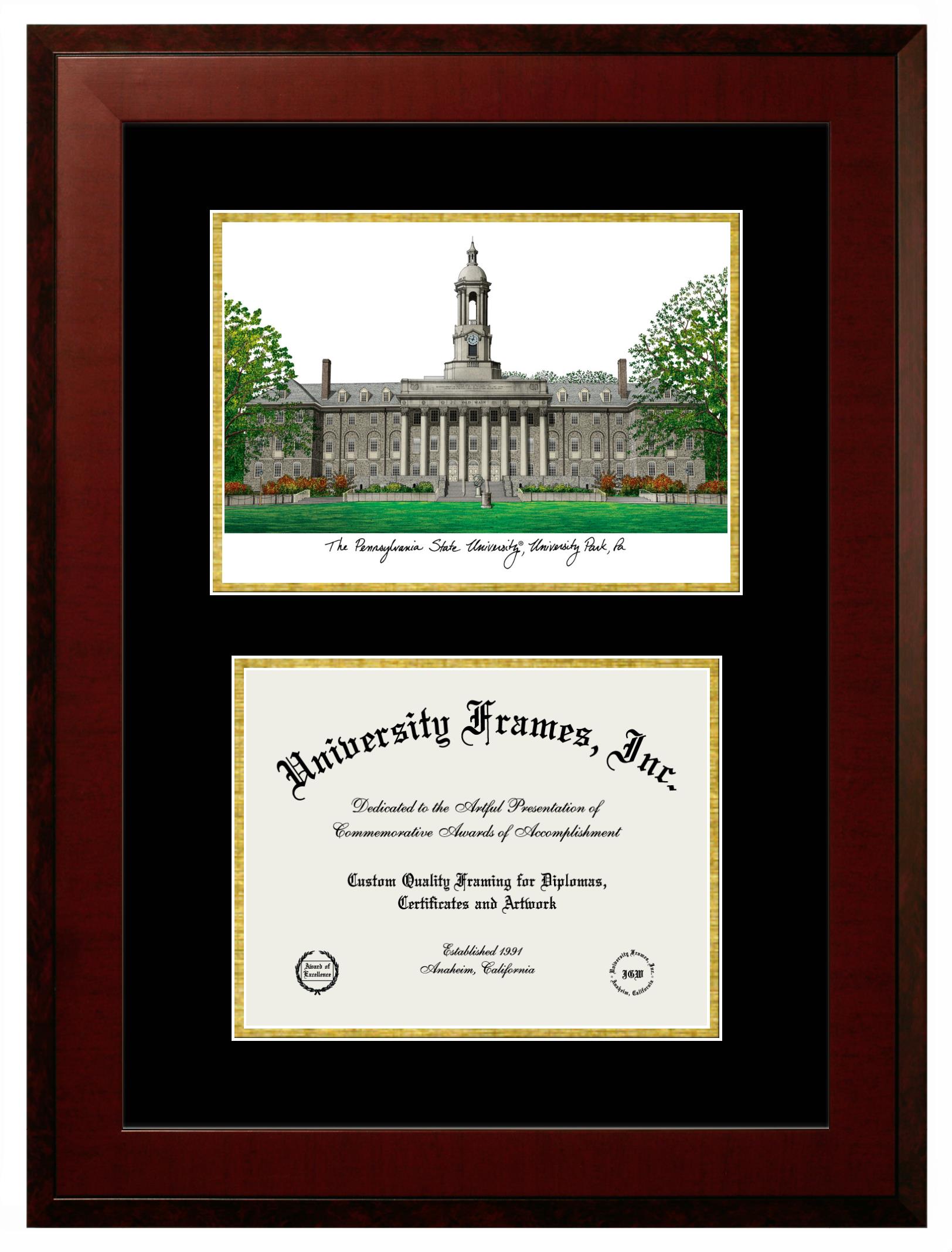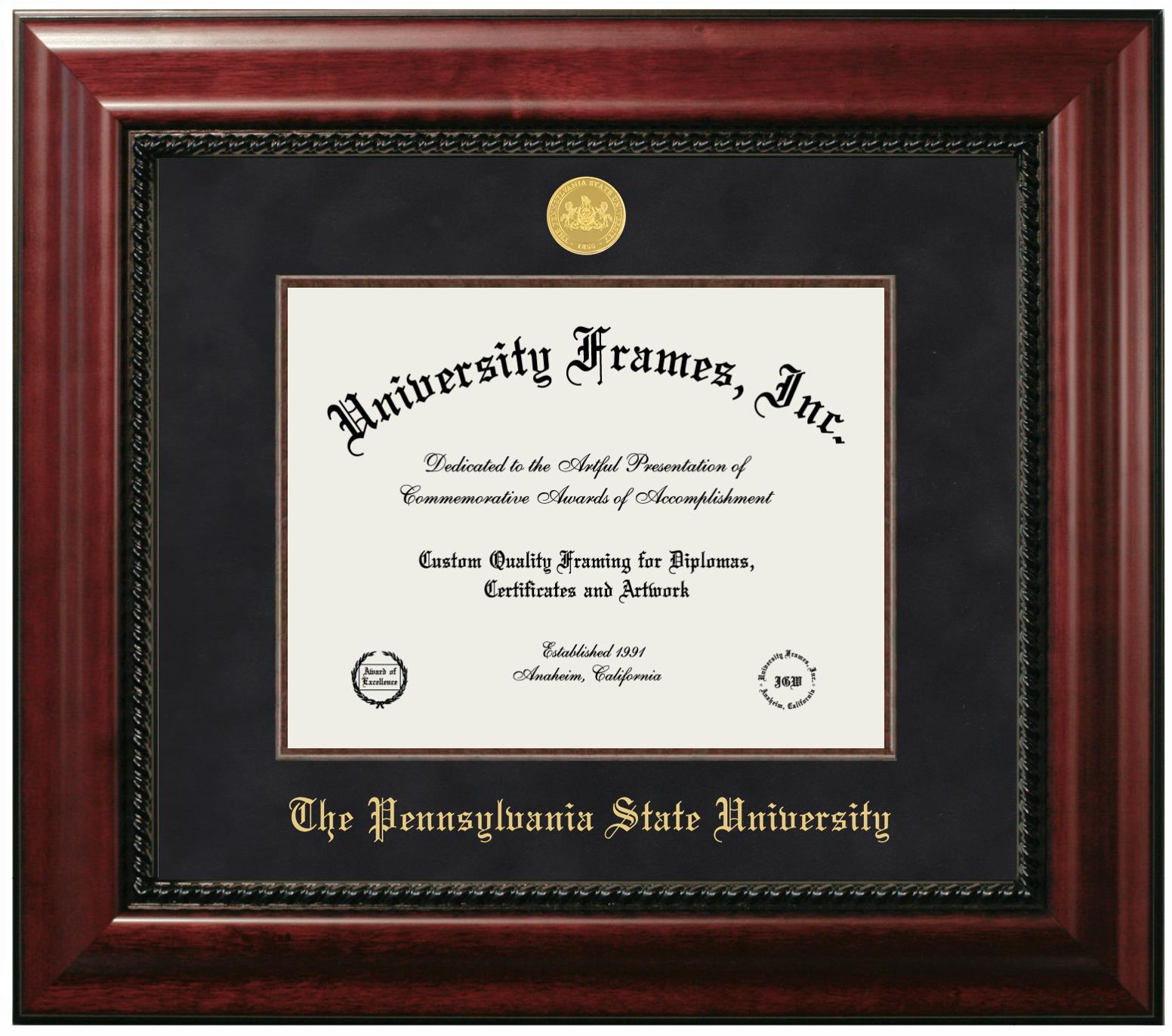 If you are looking for a professional diploma frame to showcase your achievement or are in search of a unique graduation gift for a recent grad or alum, you have come to the right place! We provide Pennsylvania State University diploma frames that are handcrafted in the USA and sized to fit the official Pennsylvania State University diploma. You can customize the graduation frames according to your taste with our online design tool. Go ahead and start customizing your diploma frame now!