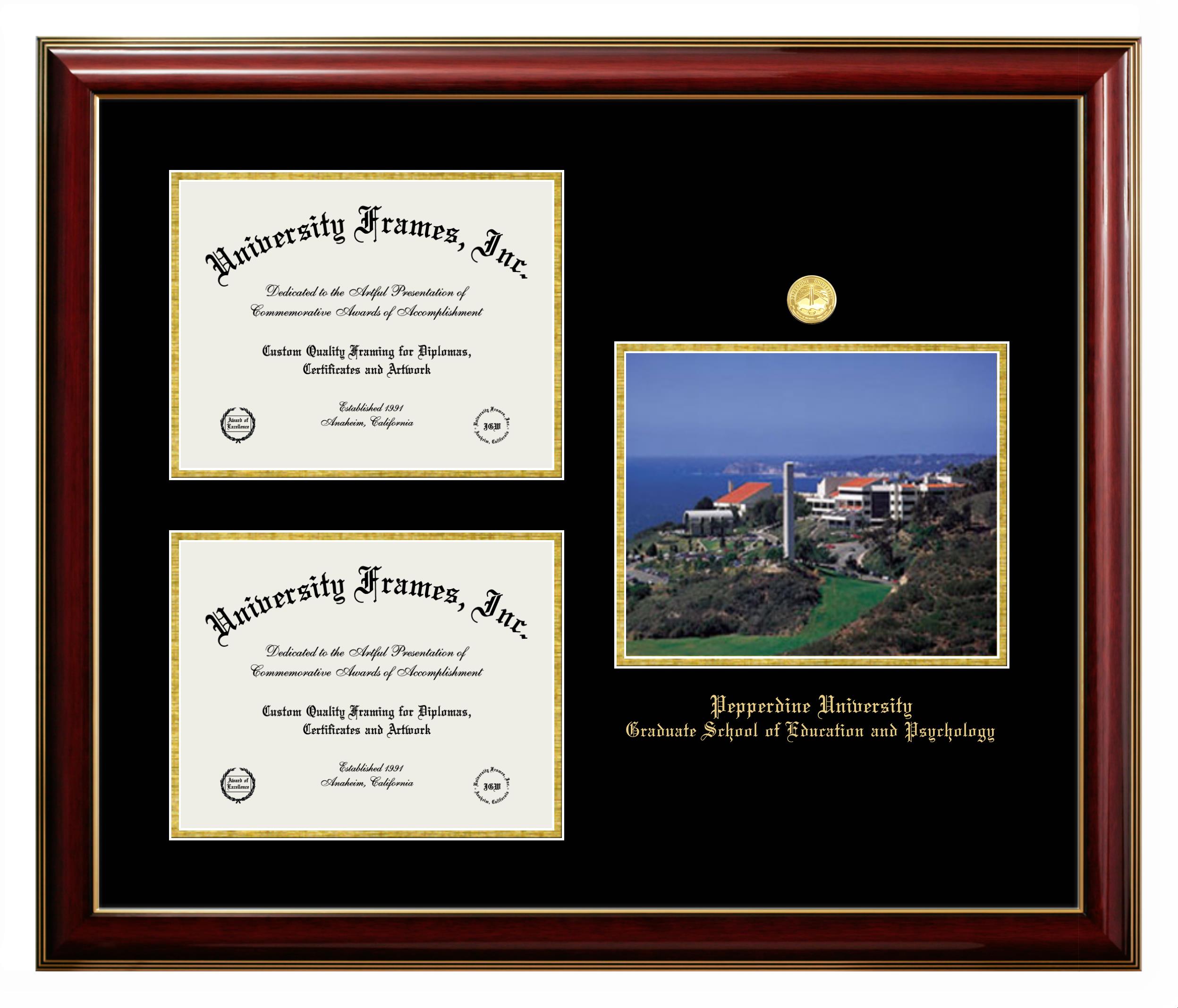 If you are looking for a professional diploma frame to showcase your achievement or are in search of a unique graduation gift for a recent grad or alum, you have come to the right place! We provide Pepperdine University Graduate School of Education and Psychology diploma frames that are handcrafted in the USA and sized to fit the official Pepperdine University Graduate School of Education and Psychology diploma. You can customize the graduation frames according to your taste with our online design tool. Go ahead and start customizing your diploma frame now!