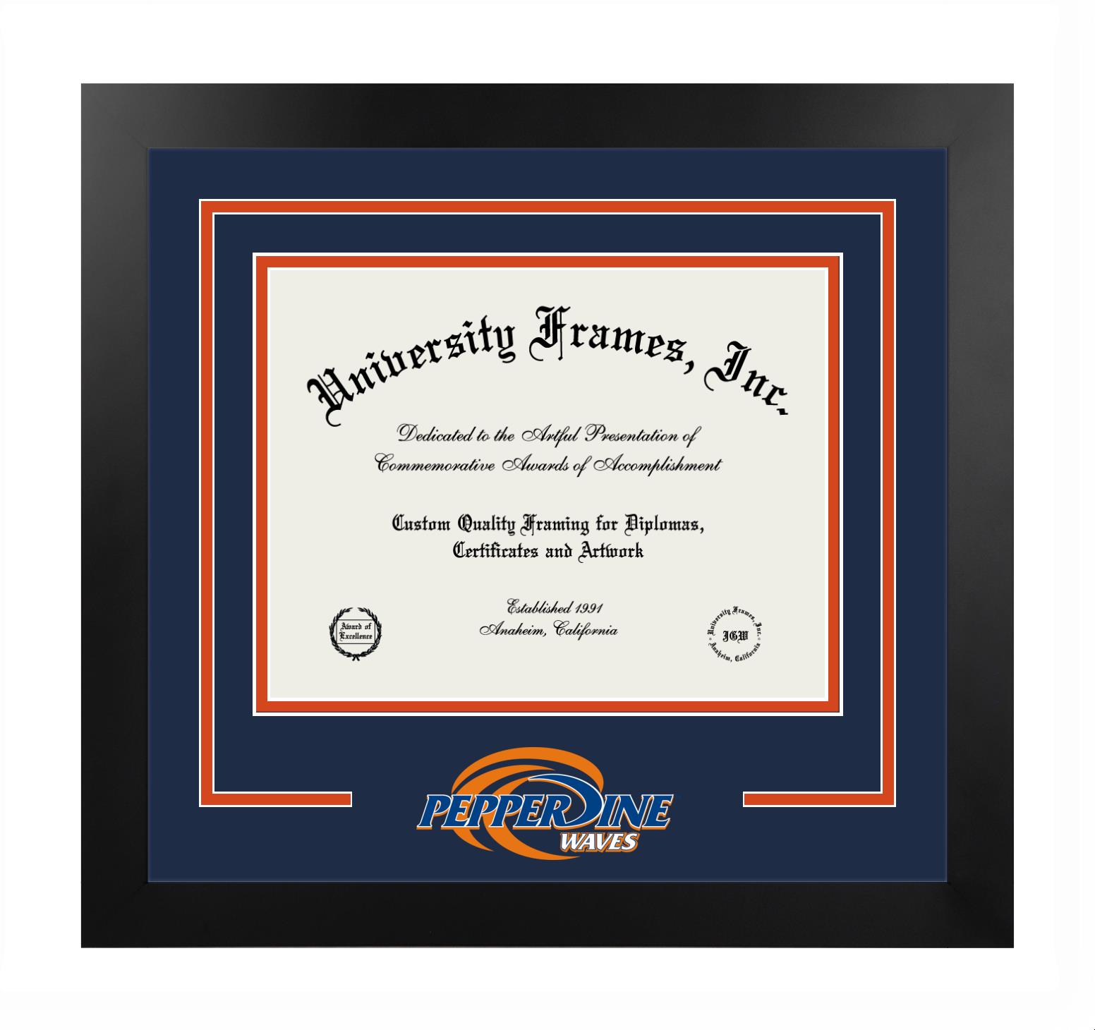 If you are looking for a professional diploma frame to showcase your achievement or are in search of a unique graduation gift for a recent grad or alum, you have come to the right place! We provide Pepperdine University diploma frames that are handcrafted in the USA and sized to fit the official Pepperdine University diploma. You can customize the graduation frames according to your taste with our online design tool. Go ahead and start customizing your diploma frame now!