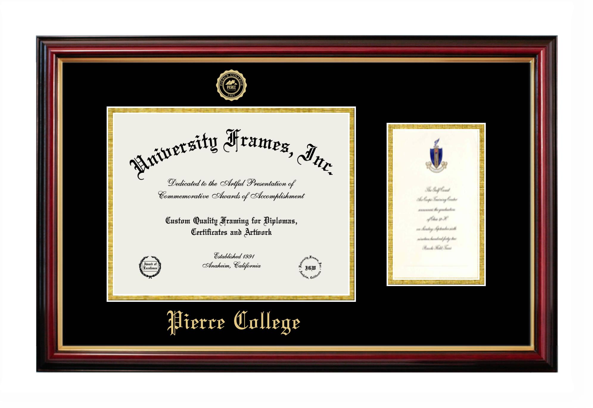 If you are looking for a professional diploma frame to showcase your achievement or are in search of a unique graduation gift for a recent grad or alum, you have come to the right place! We provide Pierce College (Washington) diploma frames that are handcrafted in the USA and sized to fit the official Pierce College (Washington) diploma. You can customize the graduation frames according to your taste with our online design tool. Go ahead and start customizing your diploma frame now!