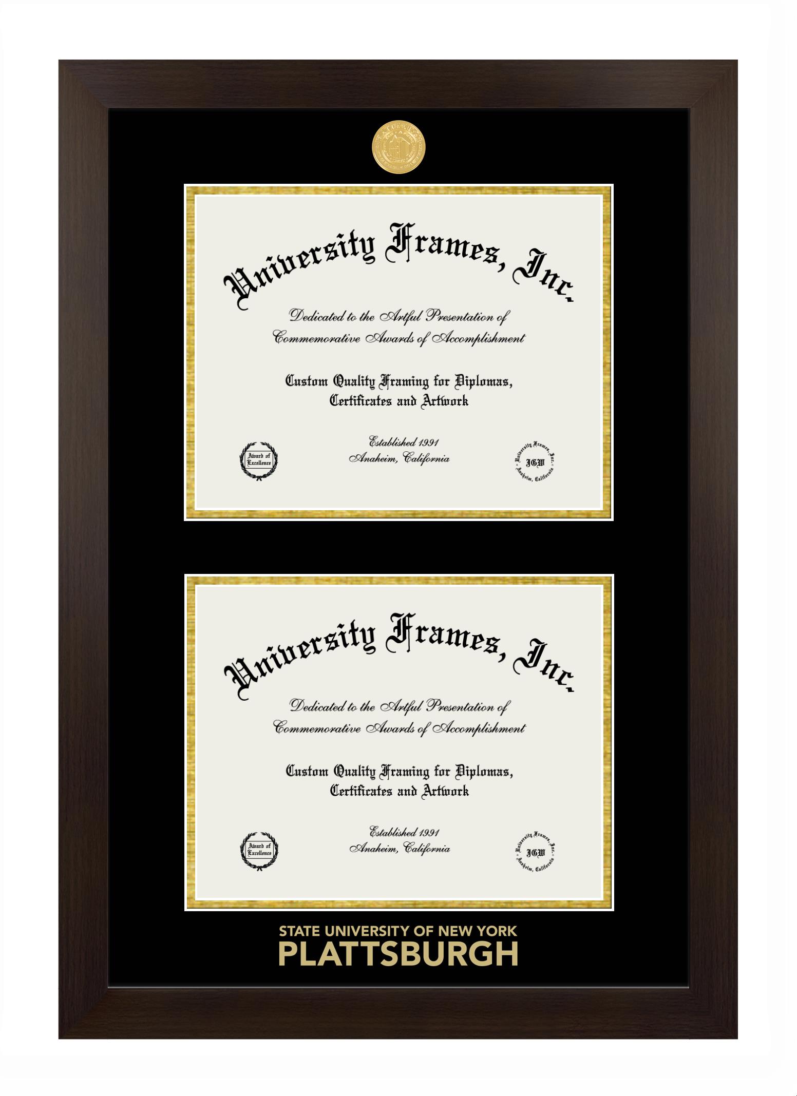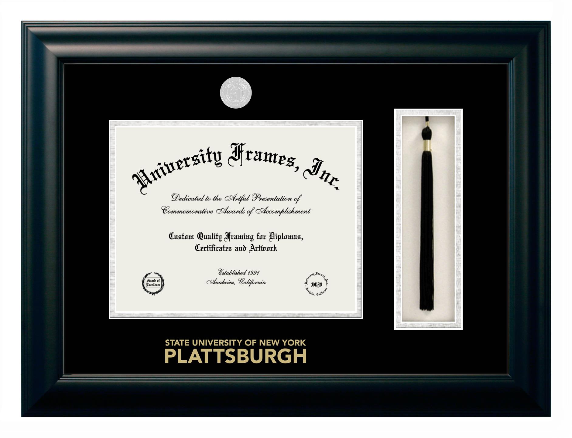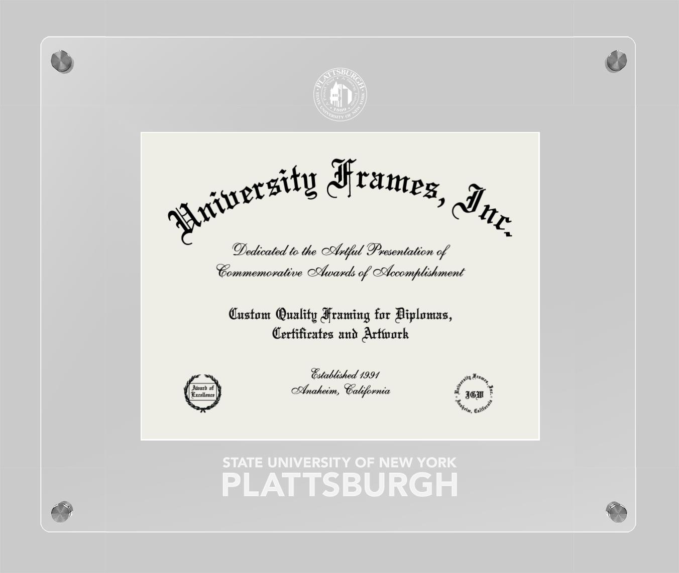 If you are looking for a professional diploma frame to showcase your achievement or are in search of a unique graduation gift for a recent grad or alum, you have come to the right place! We provide Plattsburgh State University (SUNY Plattsburgh) diploma frames that are handcrafted in the USA and sized to fit the official Plattsburgh State University (SUNY Plattsburgh) diploma. You can customize the graduation frames according to your taste with our online design tool. Go ahead and start customizing your diploma frame now!