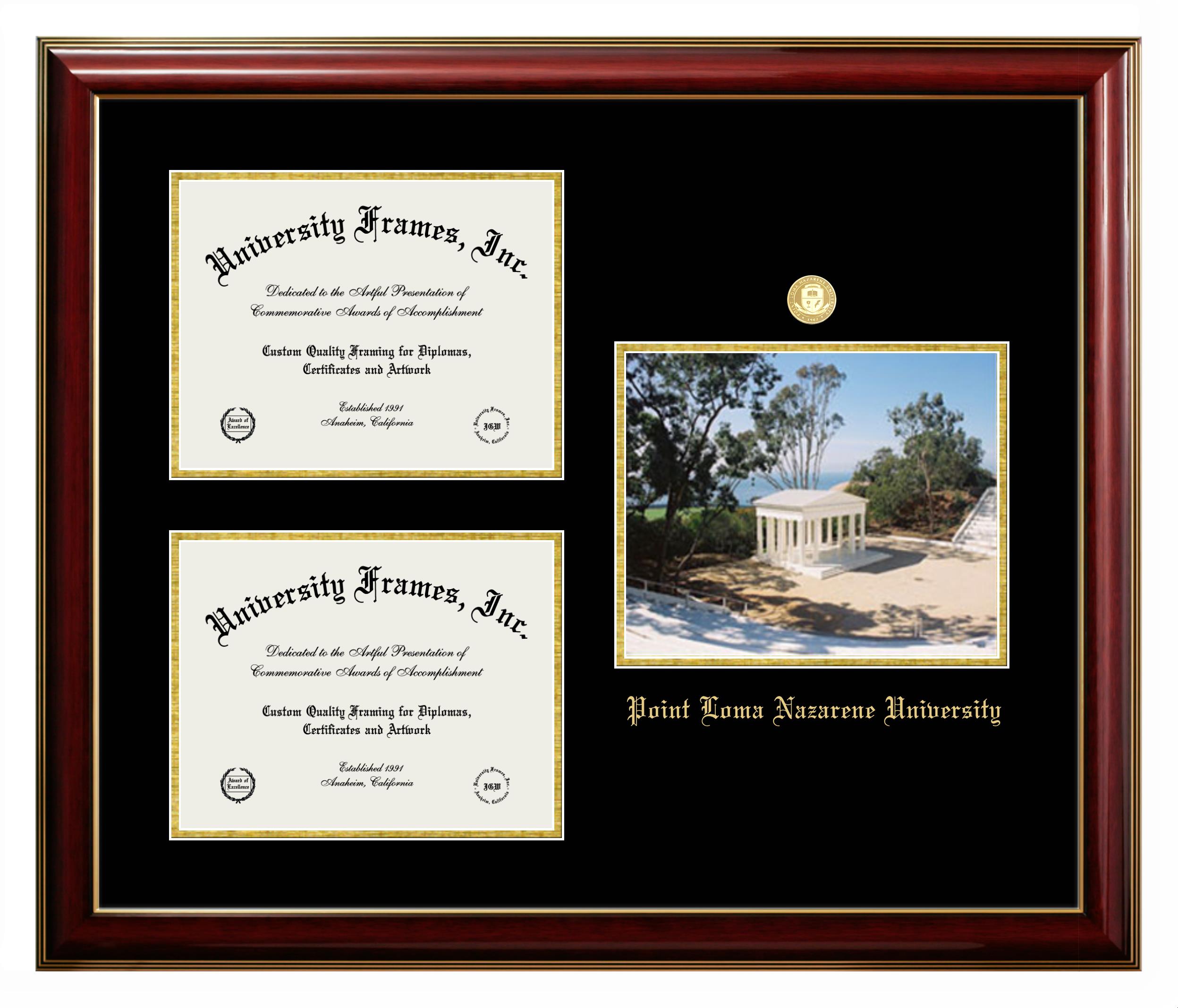 If you are looking for a professional diploma frame to showcase your achievement or are in search of a unique graduation gift for a recent grad or alum, you have come to the right place! We provide Point Loma Nazarene University diploma frames that are handcrafted in the USA and sized to fit the official Point Loma Nazarene University diploma. You can customize the graduation frames according to your taste with our online design tool. Go ahead and start customizing your diploma frame now!