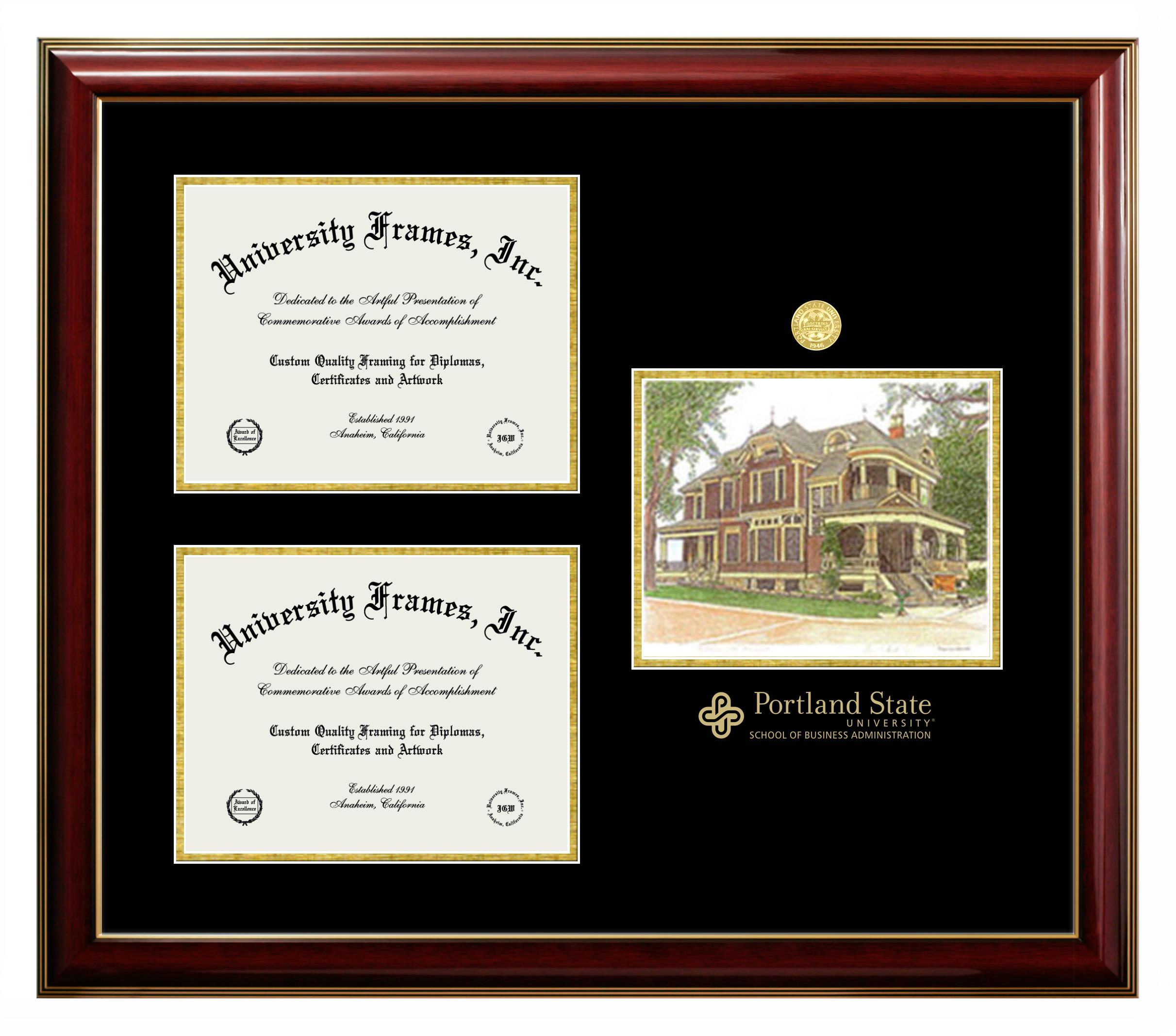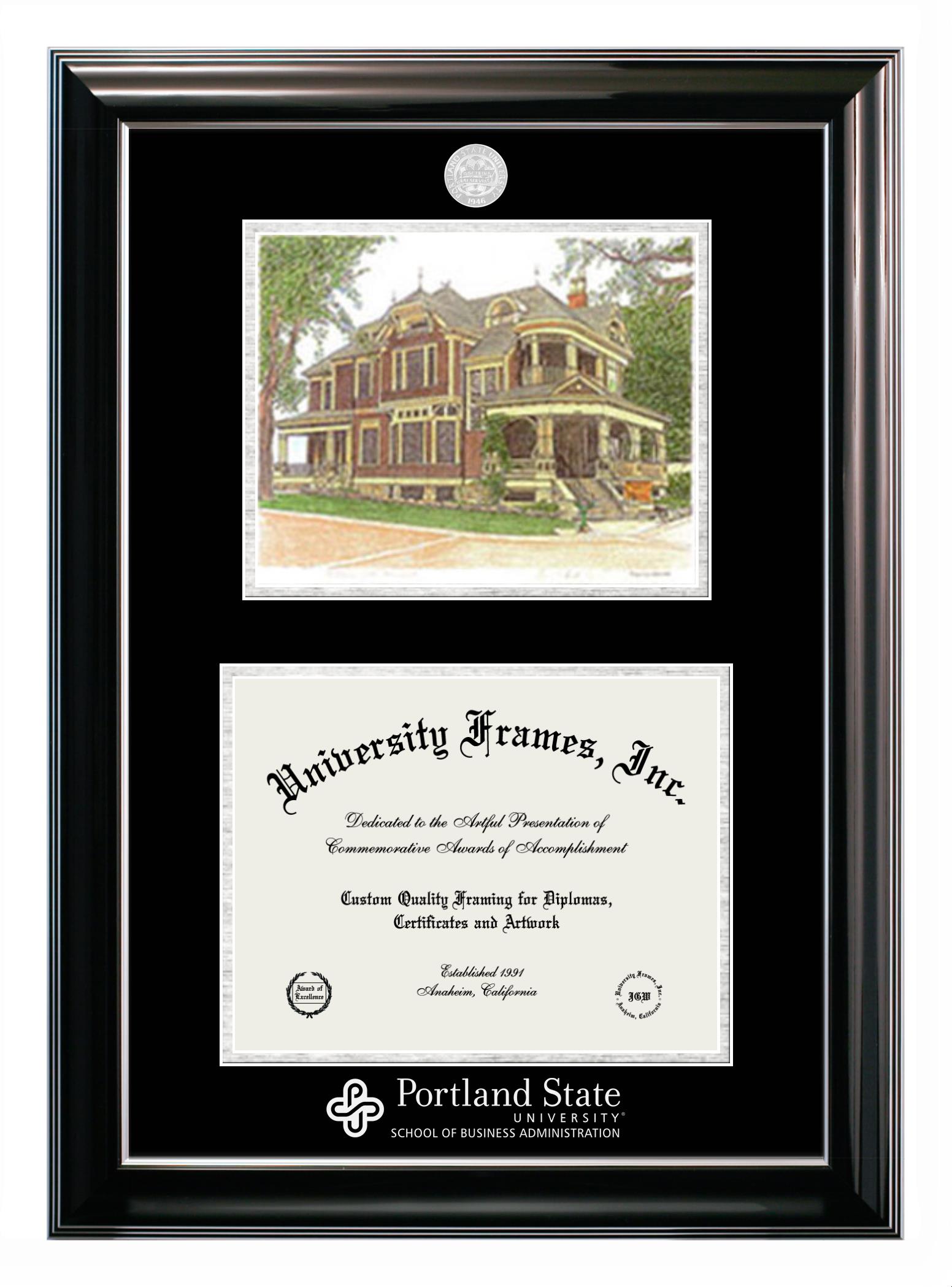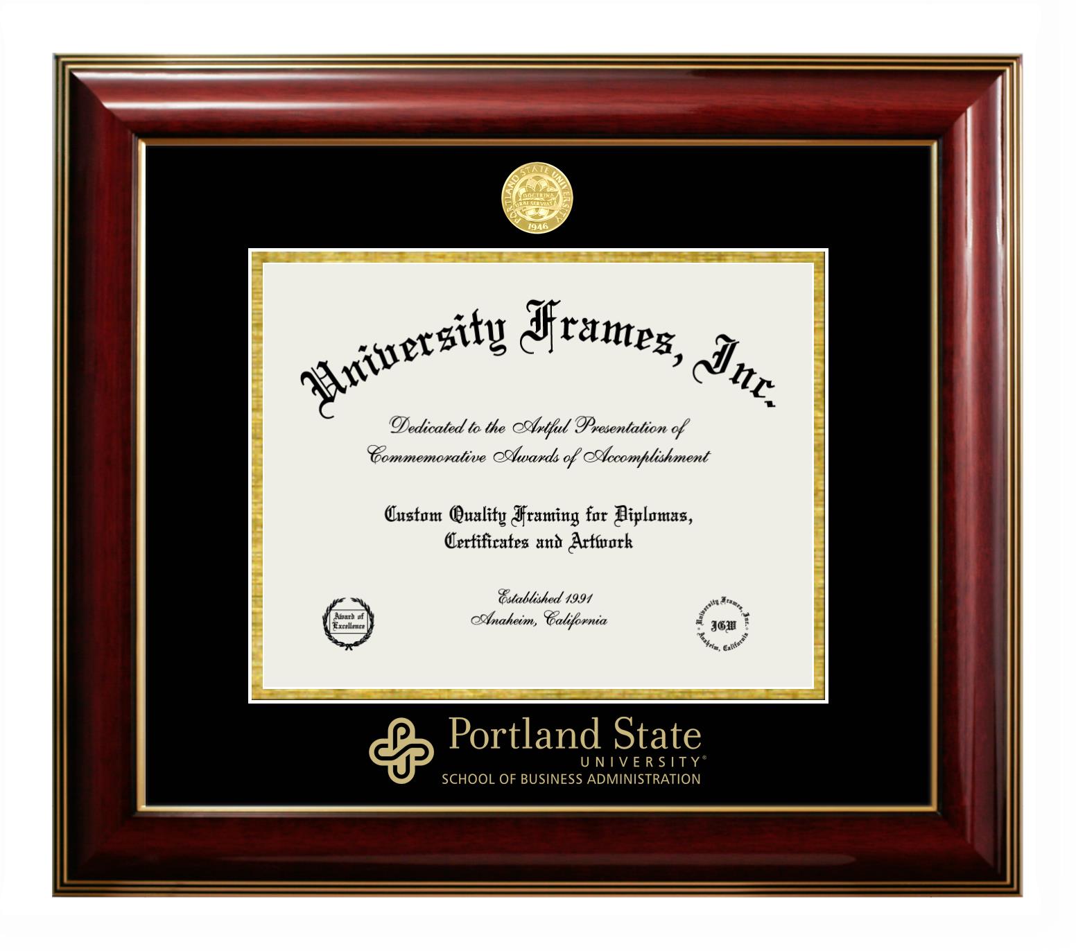 If you are looking for a professional diploma frame to showcase your achievement or are in search of a unique graduation gift for a recent grad or alum, you have come to the right place! We provide Portland State University School of Business Administration diploma frames that are handcrafted in the USA and sized to fit the official Portland State University School of Business Administration diploma. You can customize the graduation frames according to your taste with our online design tool. Go ahead and start customizing your diploma frame now!