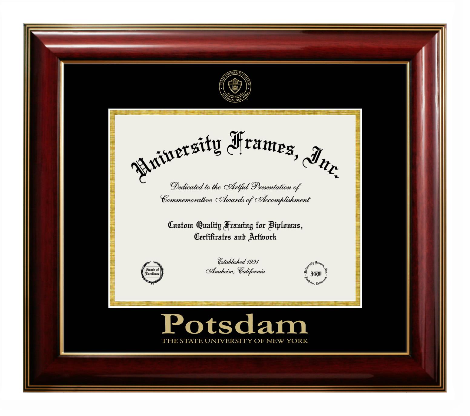 If you are looking for a professional diploma frame to showcase your achievement or are in search of a unique graduation gift for a recent grad or alum, you have come to the right place! We provide Potsdam The State University of New York diploma frames that are handcrafted in the USA and sized to fit the official Potsdam The State University of New York diploma. You can customize the graduation frames according to your taste with our online design tool. Go ahead and start customizing your diploma frame now!