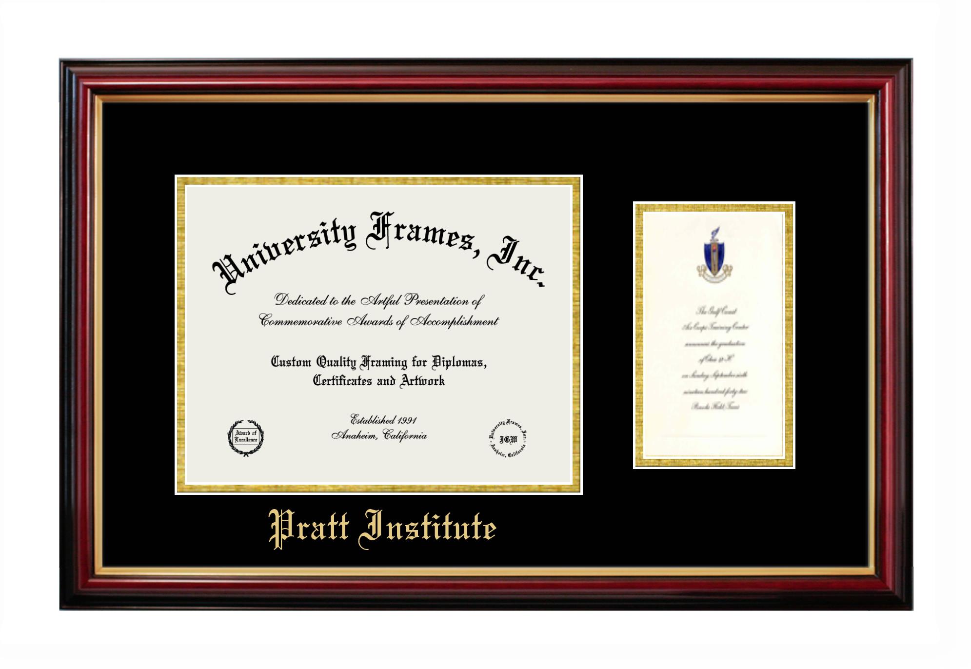 If you are looking for a professional diploma frame to showcase your achievement or are in search of a unique graduation gift for a recent grad or alum, you have come to the right place! We provide Pratt Institute diploma frames that are handcrafted in the USA and sized to fit the official Pratt Institute diploma. You can customize the graduation frames according to your taste with our online design tool. Go ahead and start customizing your diploma frame now!