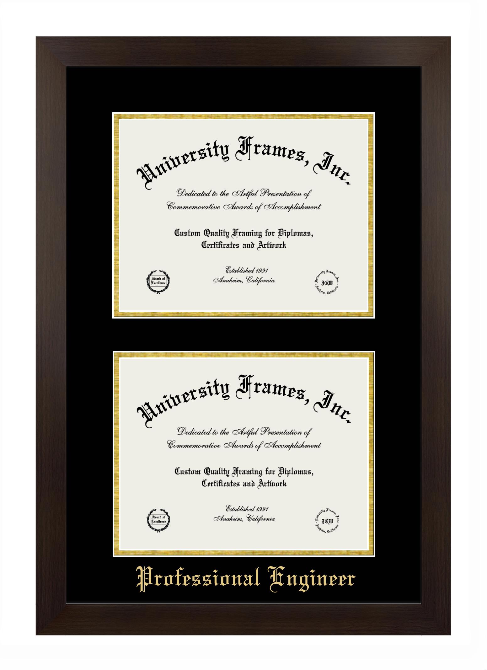 If you are looking for a professional diploma frame to showcase your achievement or are in search of a unique graduation gift for a recent grad or alum, you have come to the right place! We provide Professional Engineer (Alabama) diploma frames that are handcrafted in the USA and sized to fit the official Professional Engineer (Alabama) diploma. You can customize the graduation frames according to your taste with our online design tool. Go ahead and start customizing your diploma frame now!