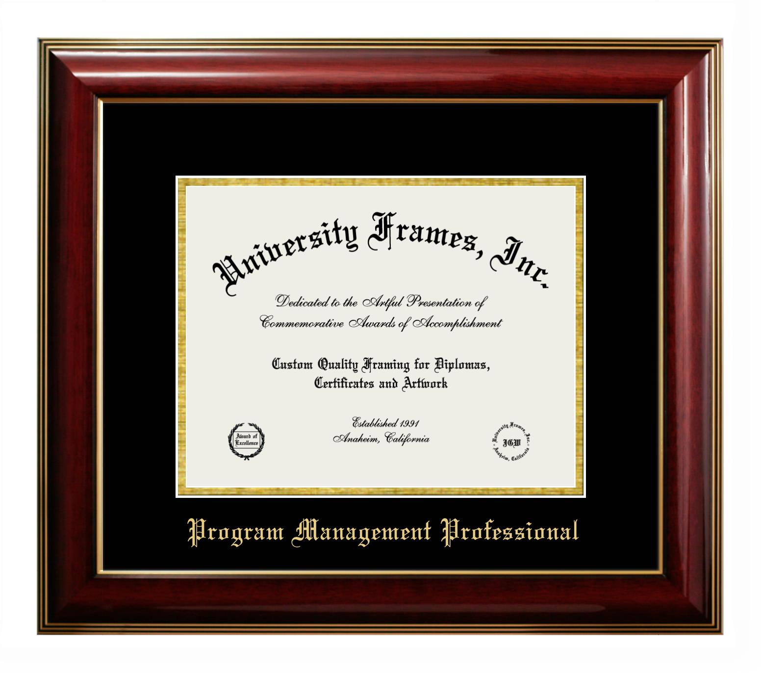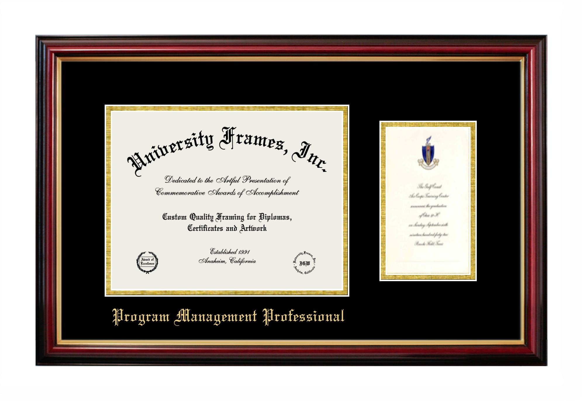If you are looking for a professional diploma frame to showcase your achievement or are in search of a unique graduation gift for a recent grad or alum, you have come to the right place! We provide Program Management Professional diploma frames that are handcrafted in the USA and sized to fit the official Program Management Professional diploma. You can customize the graduation frames according to your taste with our online design tool. Go ahead and start customizing your diploma frame now!