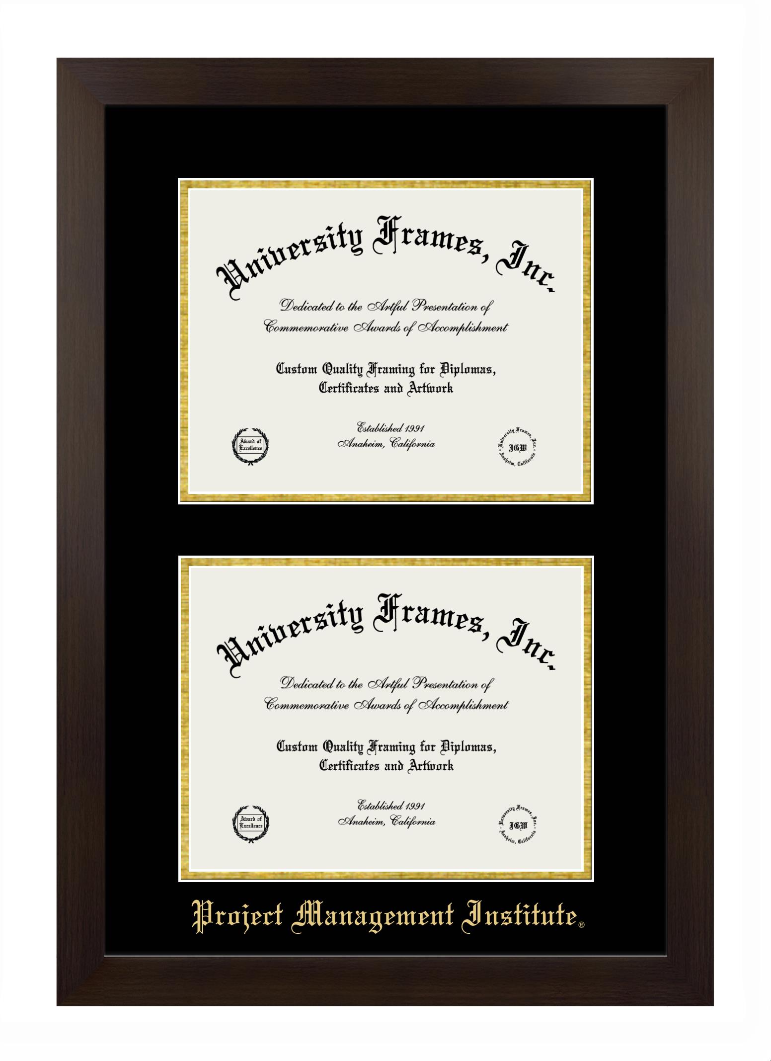 If you are looking for a professional diploma frame to showcase your achievement or are in search of a unique graduation gift for a recent grad or alum, you have come to the right place! We provide Project Management Institute diploma frames that are handcrafted in the USA and sized to fit the official Project Management Institute diploma. You can customize the graduation frames according to your taste with our online design tool. Go ahead and start customizing your diploma frame now!