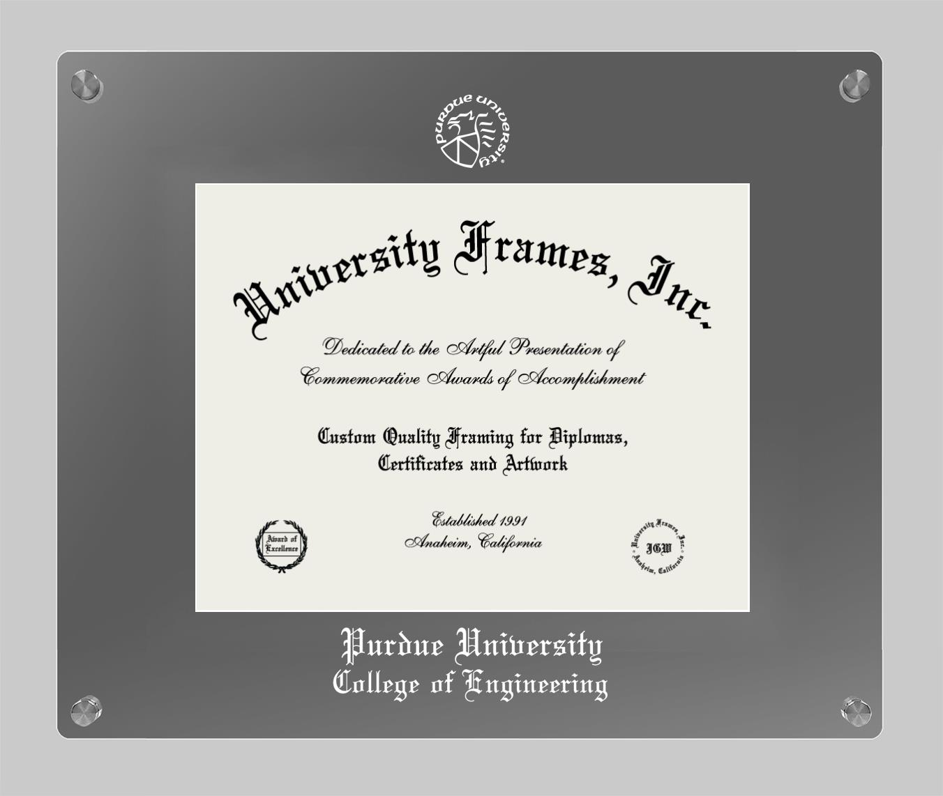 If you are looking for a professional diploma frame to showcase your achievement or are in search of a unique graduation gift for a recent grad or alum, you have come to the right place! We provide Purdue University College of Engineering diploma frames that are handcrafted in the USA and sized to fit the official Purdue University College of Engineering diploma. You can customize the graduation frames according to your taste with our online design tool. Go ahead and start customizing your diploma frame now!
