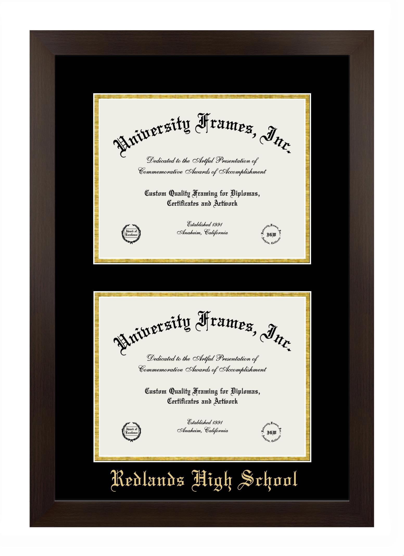 If you are looking for a professional diploma frame to showcase your achievement or are in search of a unique graduation gift for a recent grad or alum, you have come to the right place! We provide Redlands High School diploma frames that are handcrafted in the USA and sized to fit the official Redlands High School diploma. You can customize the graduation frames according to your taste with our online design tool. Go ahead and start customizing your diploma frame now!