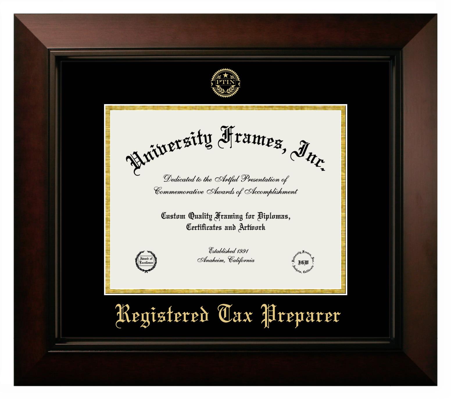 If you are looking for a professional diploma frame to showcase your achievement or are in search of a unique graduation gift for a recent grad or alum, you have come to the right place! We provide Registered Tax Preparer diploma frames that are handcrafted in the USA and sized to fit the official Registered Tax Preparer diploma. You can customize the graduation frames according to your taste with our online design tool. Go ahead and start customizing your diploma frame now!