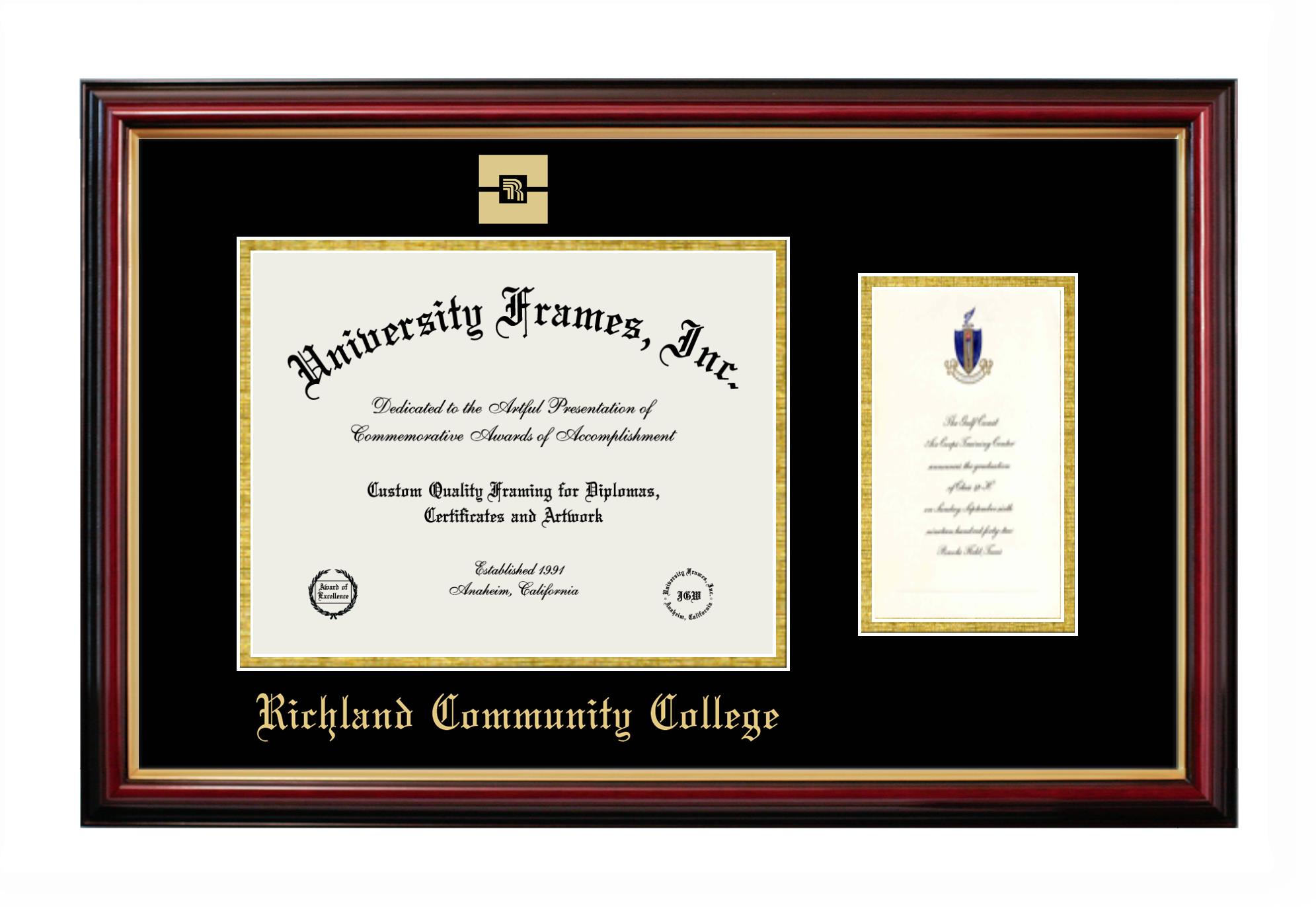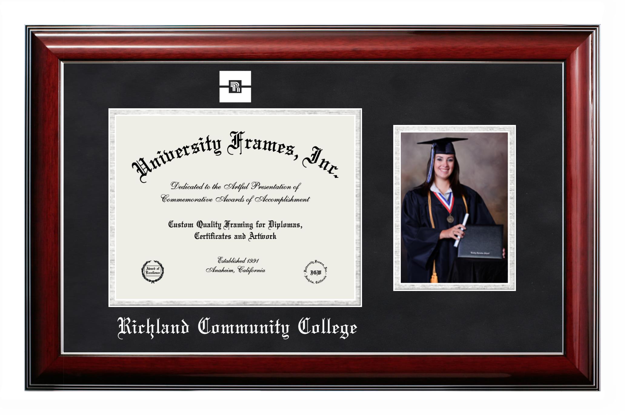 If you are looking for a professional diploma frame to showcase your achievement or are in search of a unique graduation gift for a recent grad or alum, you have come to the right place! We provide Richland Community College diploma frames that are handcrafted in the USA and sized to fit the official Richland Community College diploma. You can customize the graduation frames according to your taste with our online design tool. Go ahead and start customizing your diploma frame now!