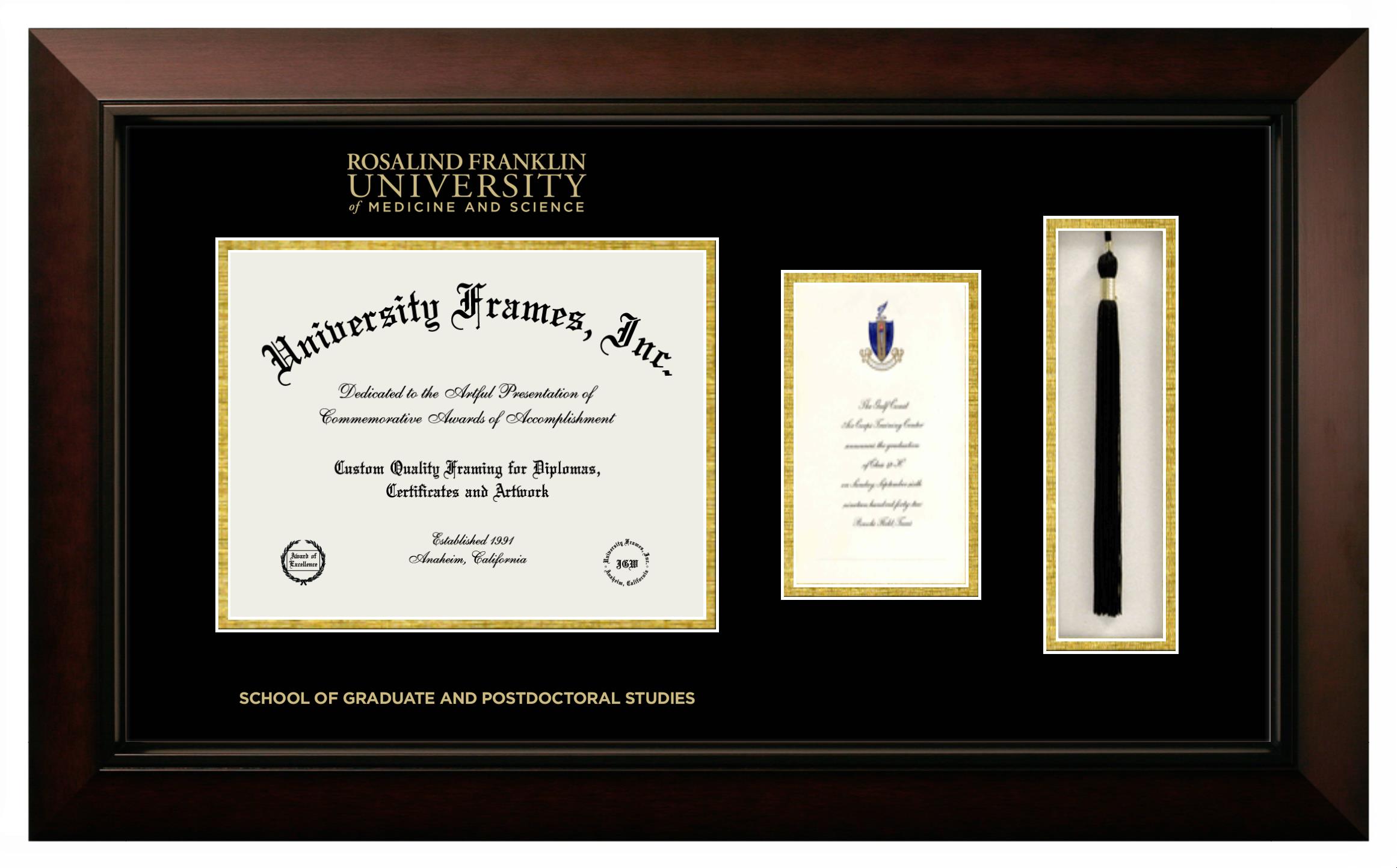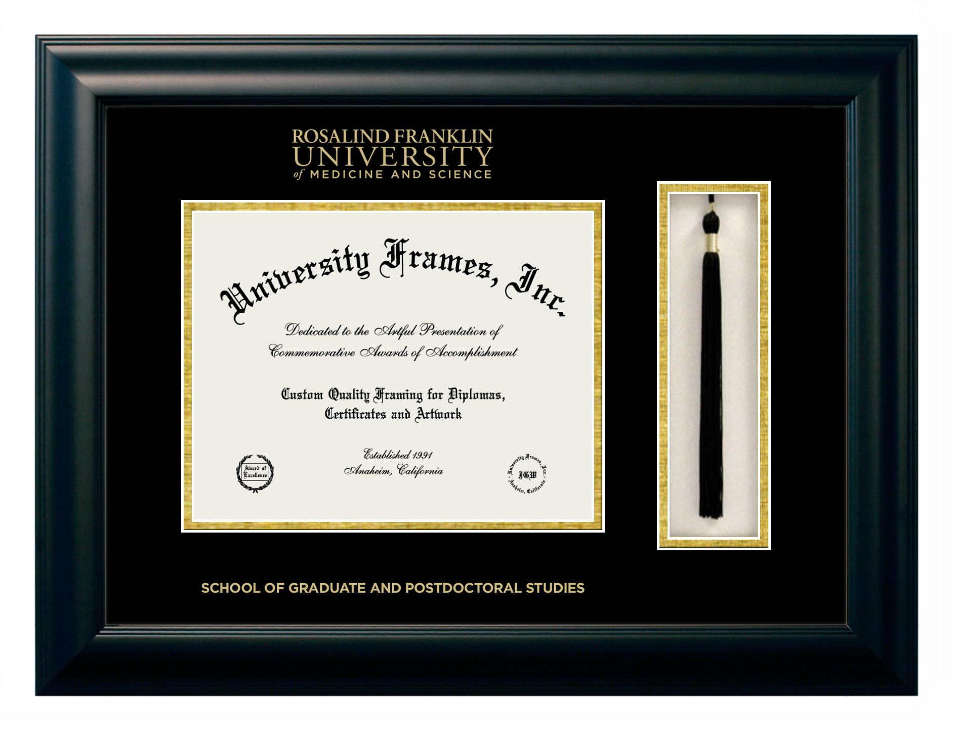 If you are looking for a professional diploma frame to showcase your achievement or are in search of a unique graduation gift for a recent grad or alum, you have come to the right place! We provide Rosalind Franklin University of Medicine and Science School of Graduate and Postdoctoral Studies diploma frames that are handcrafted in the USA and sized to fit the official Rosalind Franklin University of Medicine and Science School of Graduate and Postdoctoral Studies diploma. You can customize the graduation frames according to your taste with our online design tool. Go ahead and start customizing your diploma frame now!