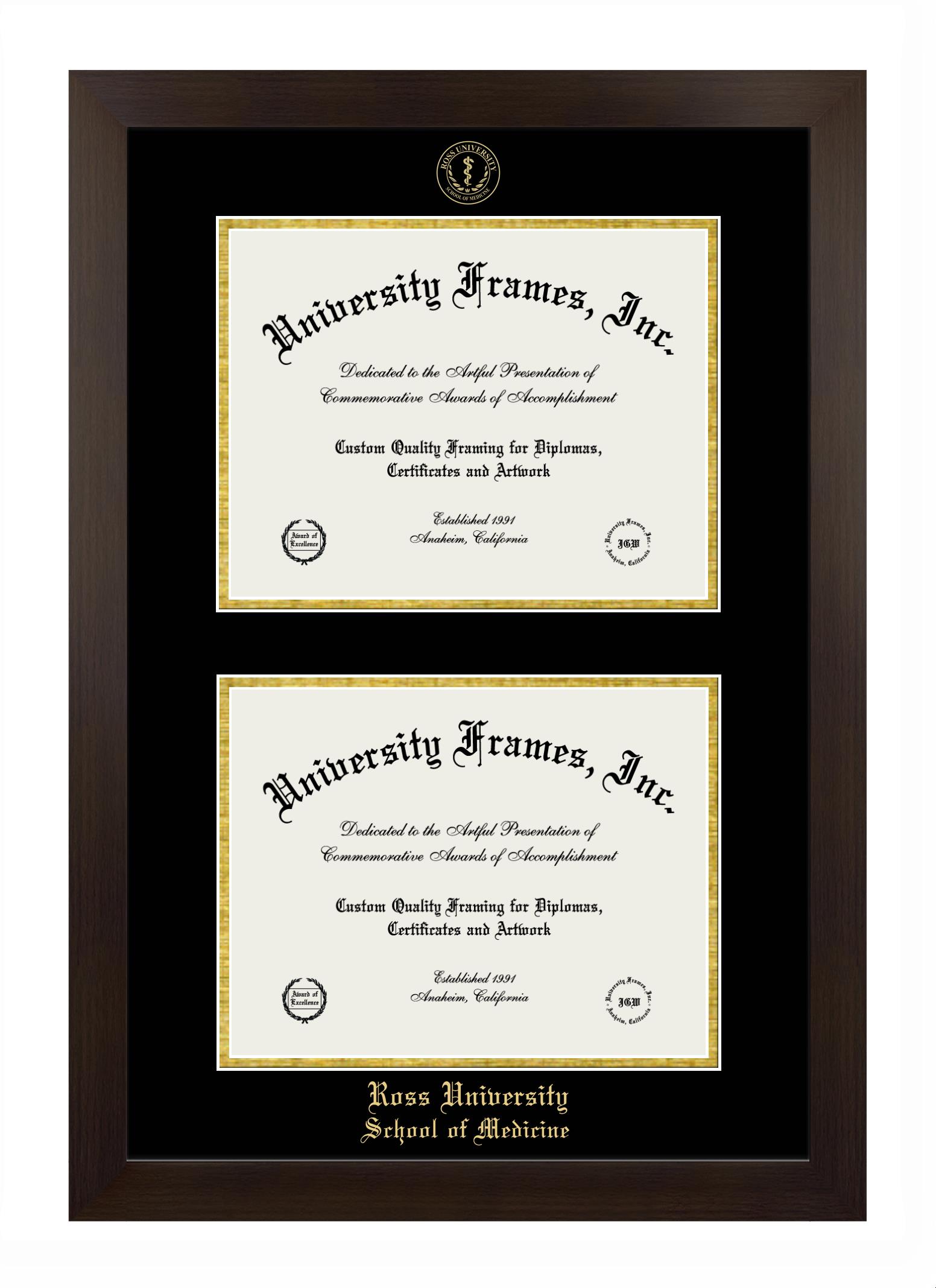 If you are looking for a professional diploma frame to showcase your achievement or are in search of a unique graduation gift for a recent grad or alum, you have come to the right place! We provide Ross University School of Medicine diploma frames that are handcrafted in the USA and sized to fit the official Ross University School of Medicine diploma. You can customize the graduation frames according to your taste with our online design tool. Go ahead and start customizing your diploma frame now!