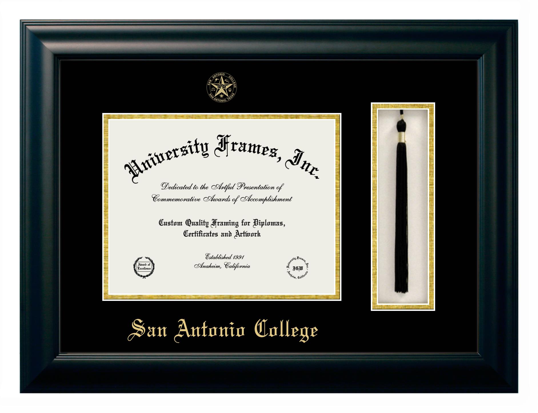If you are looking for a professional diploma frame to showcase your achievement or are in search of a unique graduation gift for a recent grad or alum, you have come to the right place! We provide San Antonio College diploma frames that are handcrafted in the USA and sized to fit the official San Antonio College diploma. You can customize the graduation frames according to your taste with our online design tool. Go ahead and start customizing your diploma frame now!