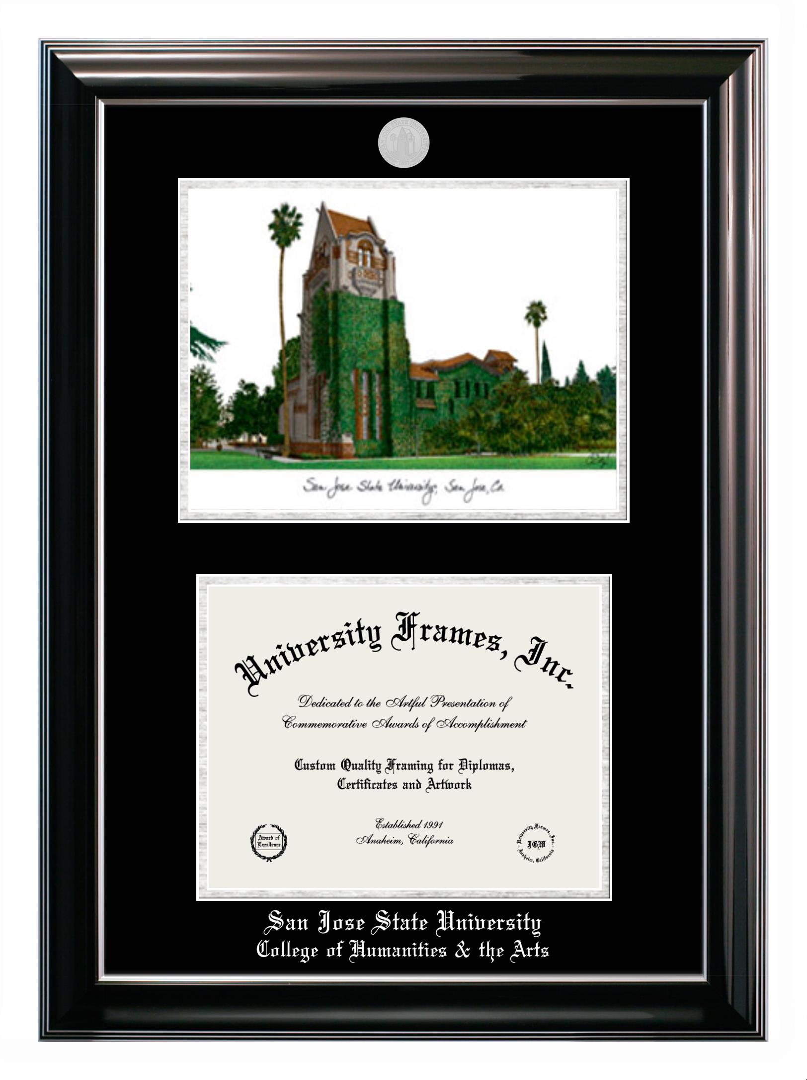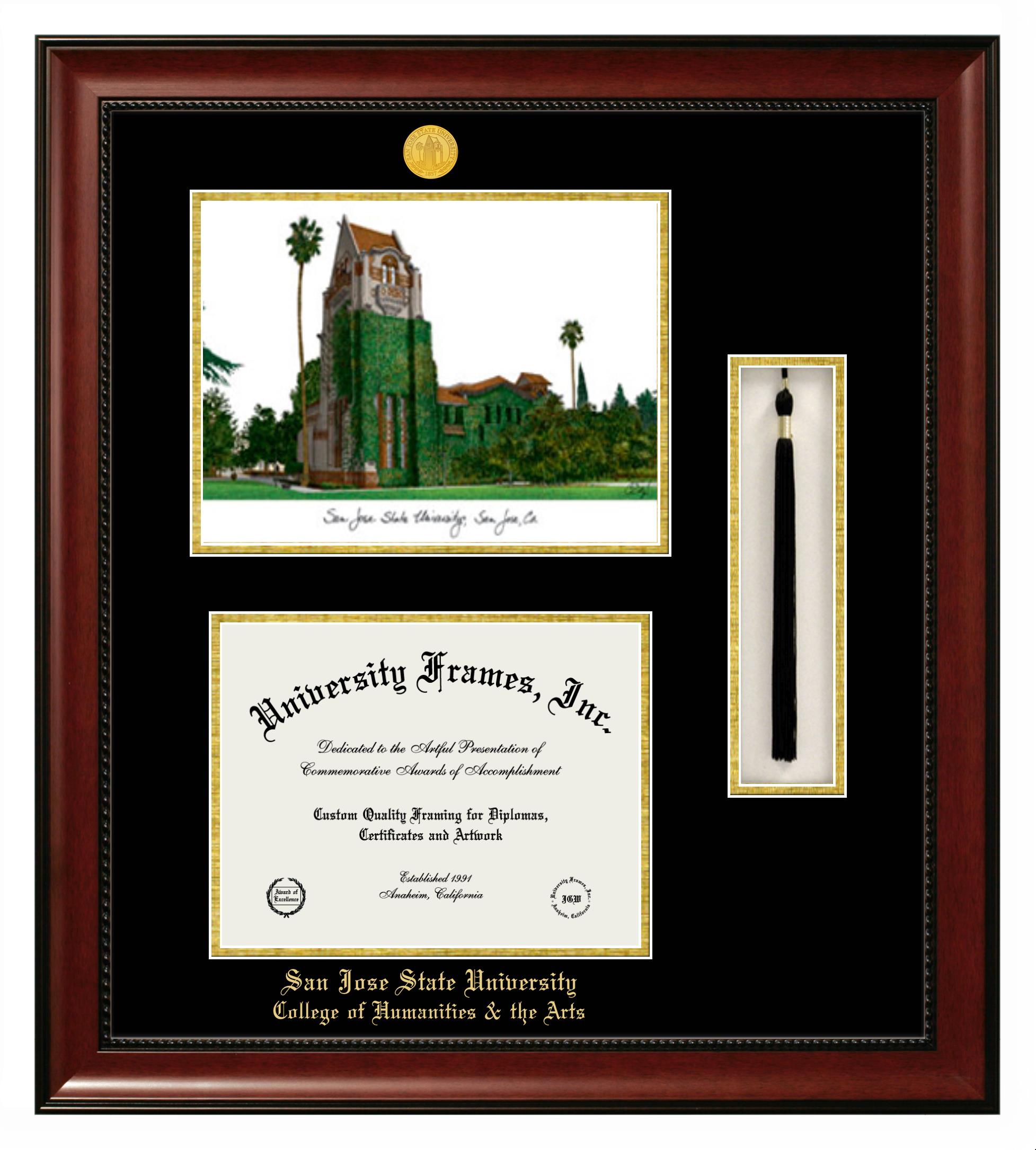 If you are looking for a professional diploma frame to showcase your achievement or are in search of a unique graduation gift for a recent grad or alum, you have come to the right place! We provide San Jose State University College of Humanities & the Arts diploma frames that are handcrafted in the USA and sized to fit the official San Jose State University College of Humanities & the Arts diploma. You can customize the graduation frames according to your taste with our online design tool. Go ahead and start customizing your diploma frame now!