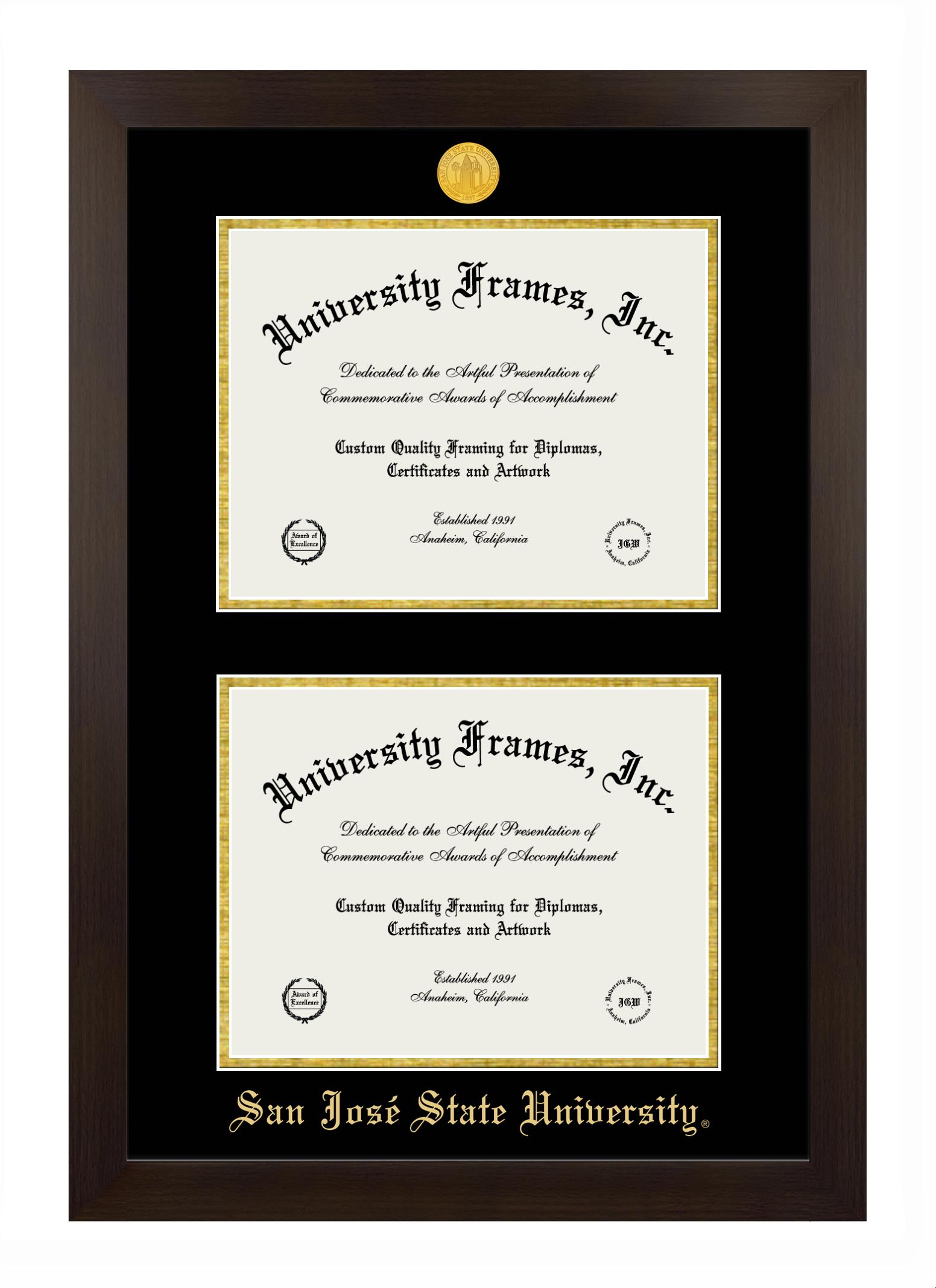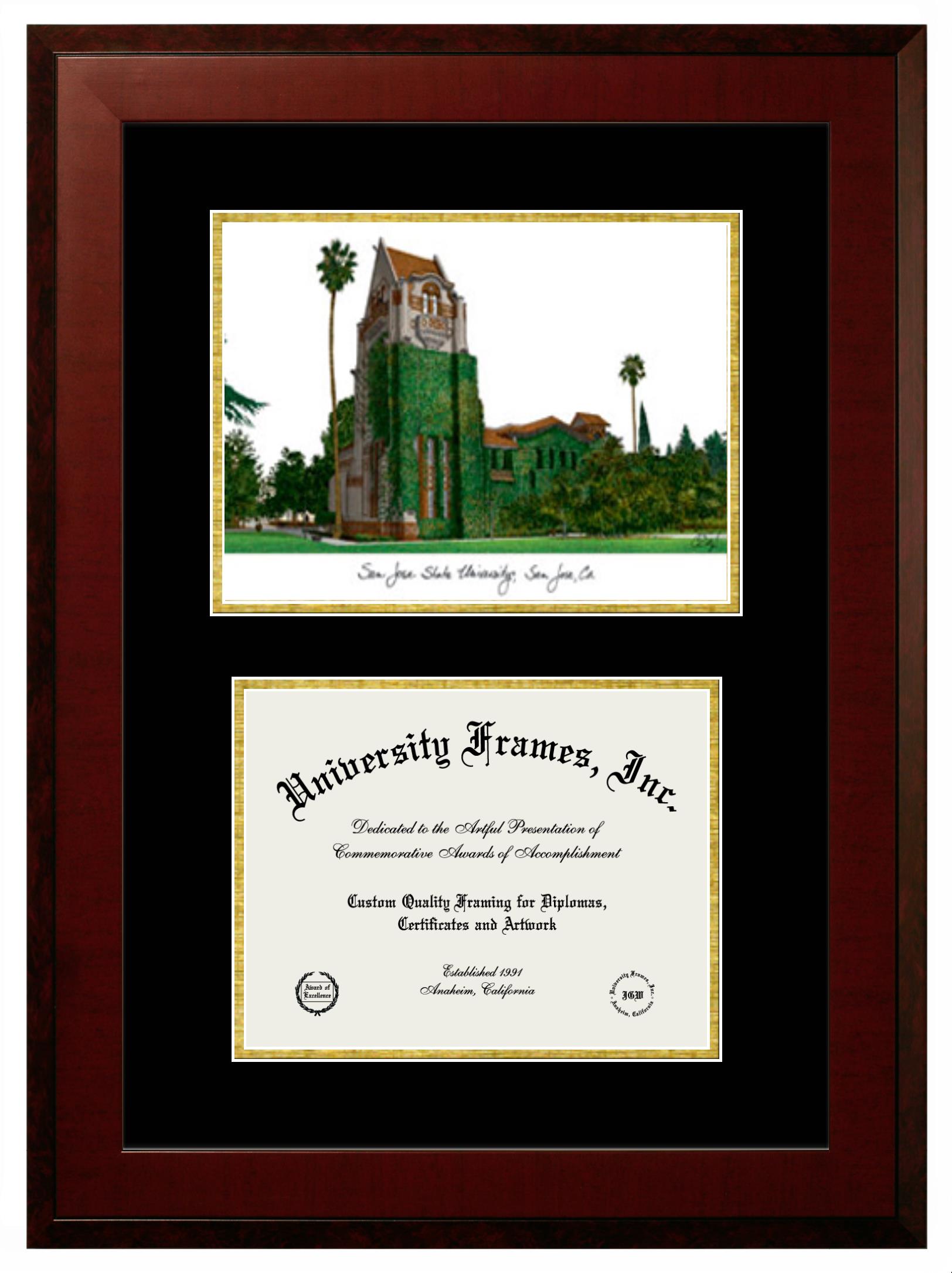 If you are looking for a professional diploma frame to showcase your achievement or are in search of a unique graduation gift for a recent grad or alum, you have come to the right place! We provide San Jose State University diploma frames that are handcrafted in the USA and sized to fit the official San Jose State University diploma. You can customize the graduation frames according to your taste with our online design tool. Go ahead and start customizing your diploma frame now!