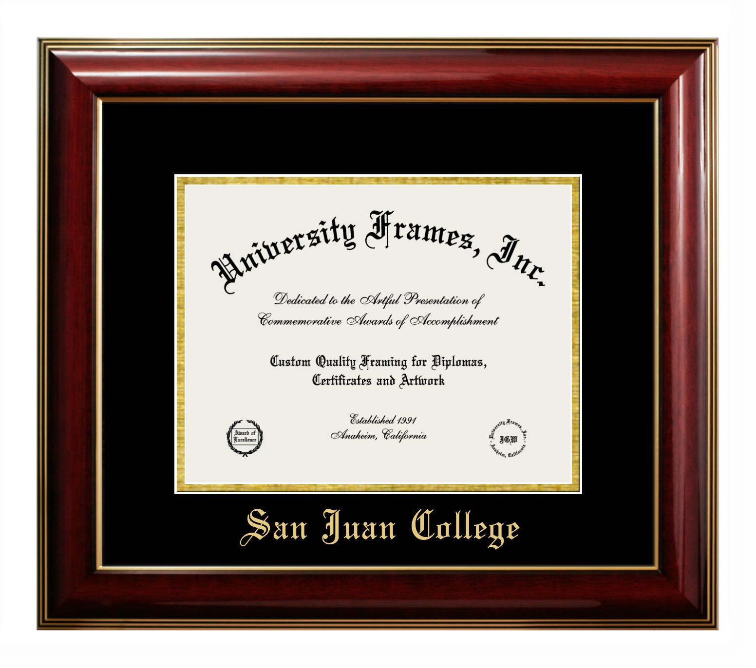 If you are looking for a professional diploma frame to showcase your achievement or are in search of a unique graduation gift for a recent grad or alum, you have come to the right place! We provide San Juan College diploma frames that are handcrafted in the USA and sized to fit the official San Juan College diploma. You can customize the graduation frames according to your taste with our online design tool. Go ahead and start customizing your diploma frame now!