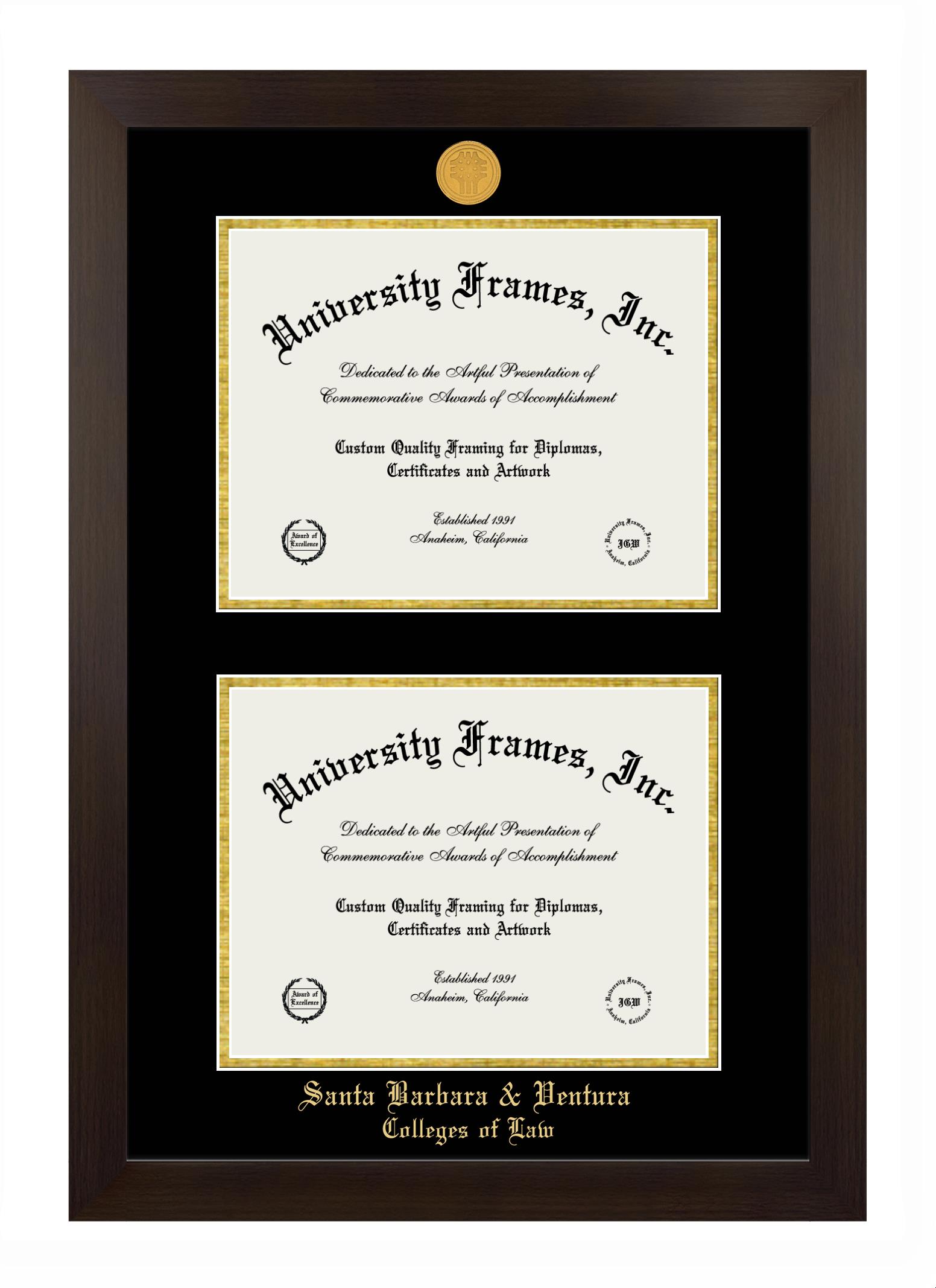If you are looking for a professional diploma frame to showcase your achievement or are in search of a unique graduation gift for a recent grad or alum, you have come to the right place! We provide Santa Barbara & Ventura Colleges of Law diploma frames that are handcrafted in the USA and sized to fit the official Santa Barbara & Ventura Colleges of Law diploma. You can customize the graduation frames according to your taste with our online design tool. Go ahead and start customizing your diploma frame now!