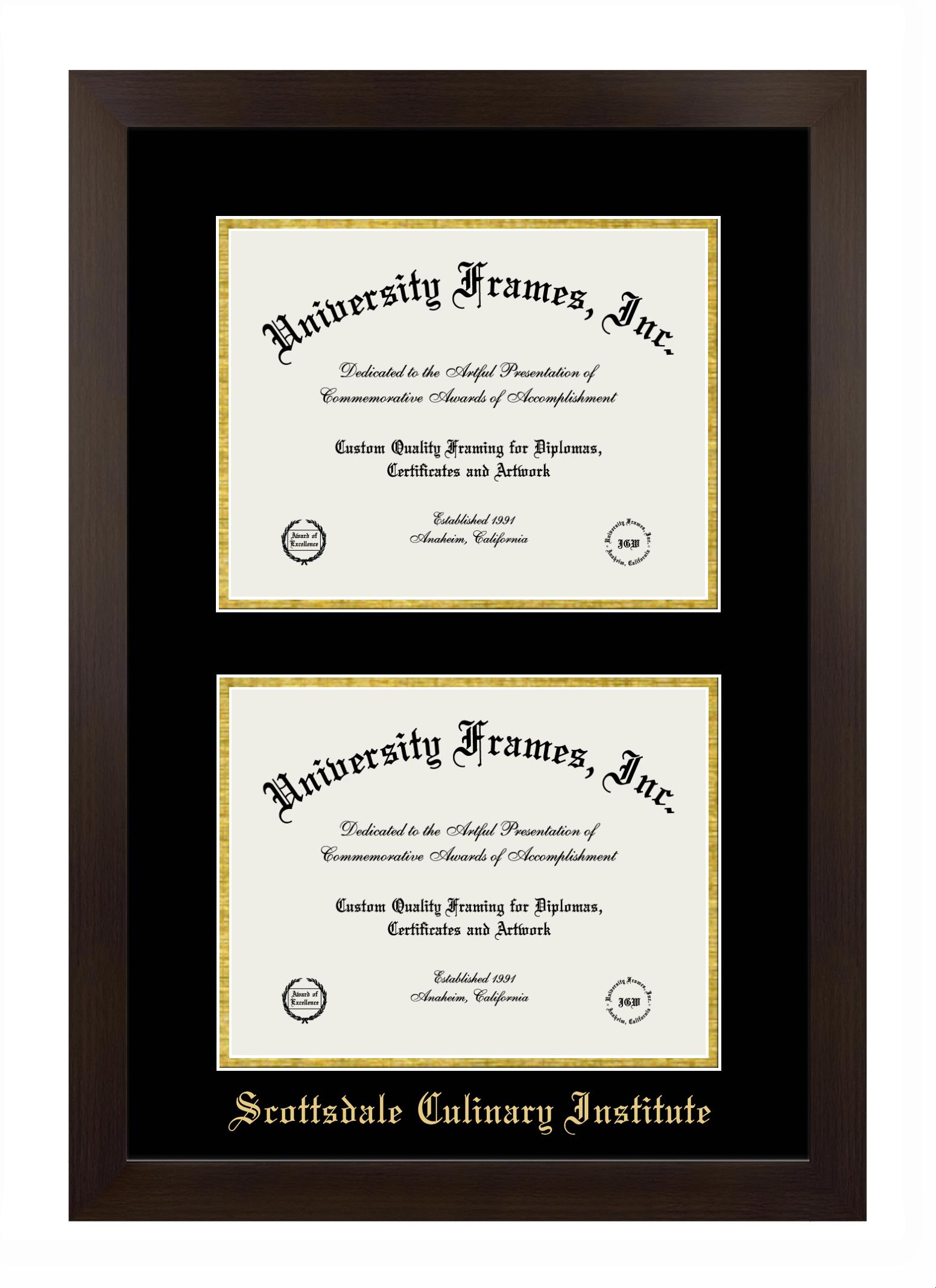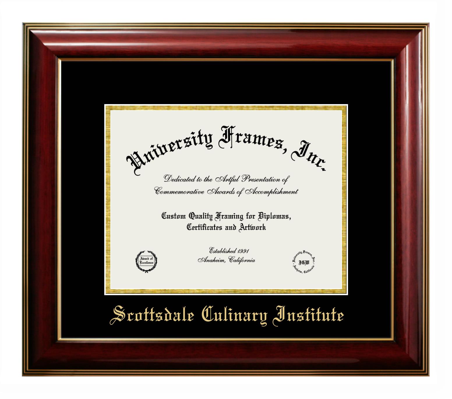 If you are looking for a professional diploma frame to showcase your achievement or are in search of a unique graduation gift for a recent grad or alum, you have come to the right place! We provide Scottsdale Culinary Institute diploma frames that are handcrafted in the USA and sized to fit the official Scottsdale Culinary Institute diploma. You can customize the graduation frames according to your taste with our online design tool. Go ahead and start customizing your diploma frame now!
