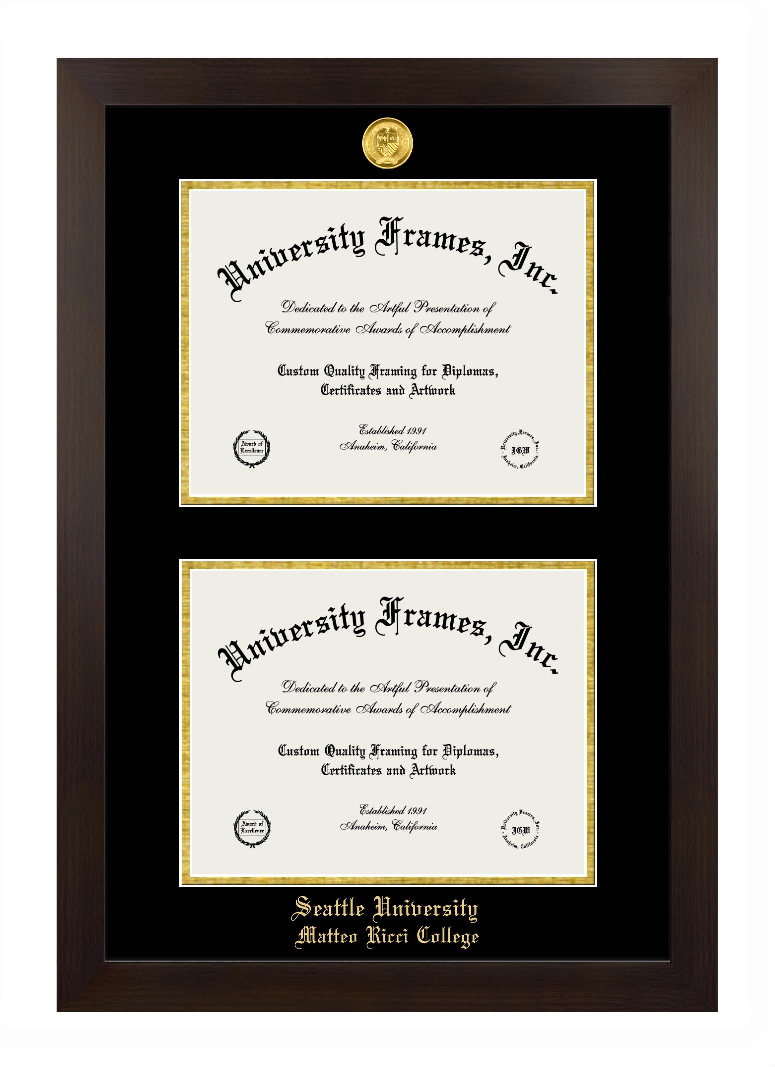 Want a professional diploma frame to showcase your achievement? Or are you looking for a fantastic graduation gift for a new grad or alum? Our official Seattle University Matteo Ricci College diploma frames are the best option to showcase any well-deserved diploma. Handcrafted in the USA, our best-in-class degree frames are custom-designed for the official Seattle University Matteo Ricci College diploma. You can customize your frame with our hassle-free online design tool. Start customizing your diploma frame now!