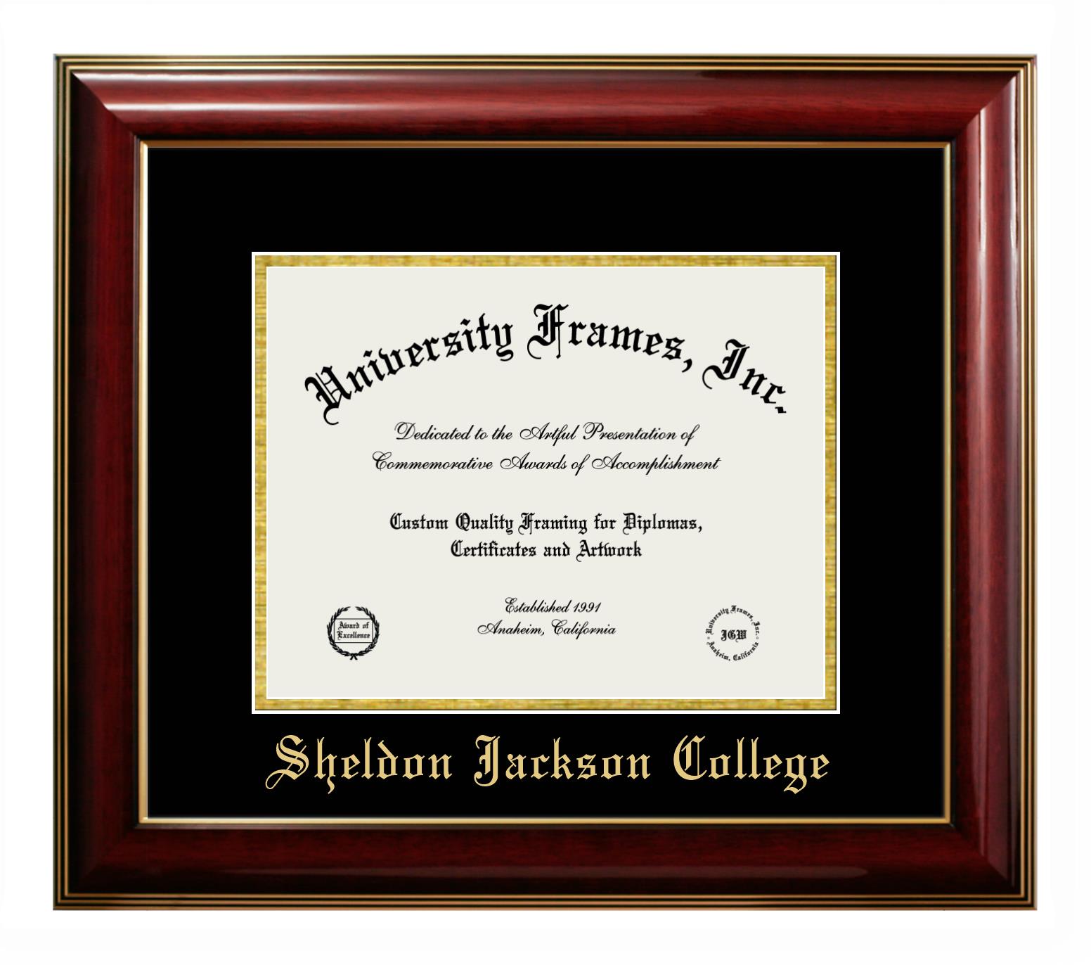 Want a professional diploma frame to showcase your achievement? Or are you looking for a fantastic graduation gift for a new grad or alum? Our official Sheldon Jackson College diploma frames are the best option to showcase any well-deserved diploma. Handcrafted in the USA, our best-in-class degree frames are custom-designed for the official Sheldon Jackson College diploma. You can customize your frame with our hassle-free online design tool. Start customizing your diploma frame now!